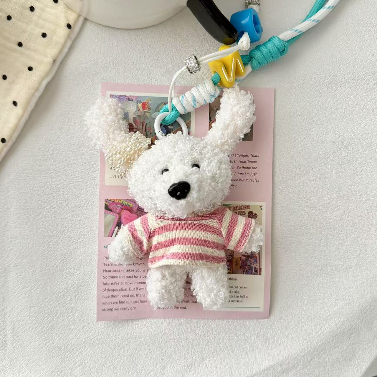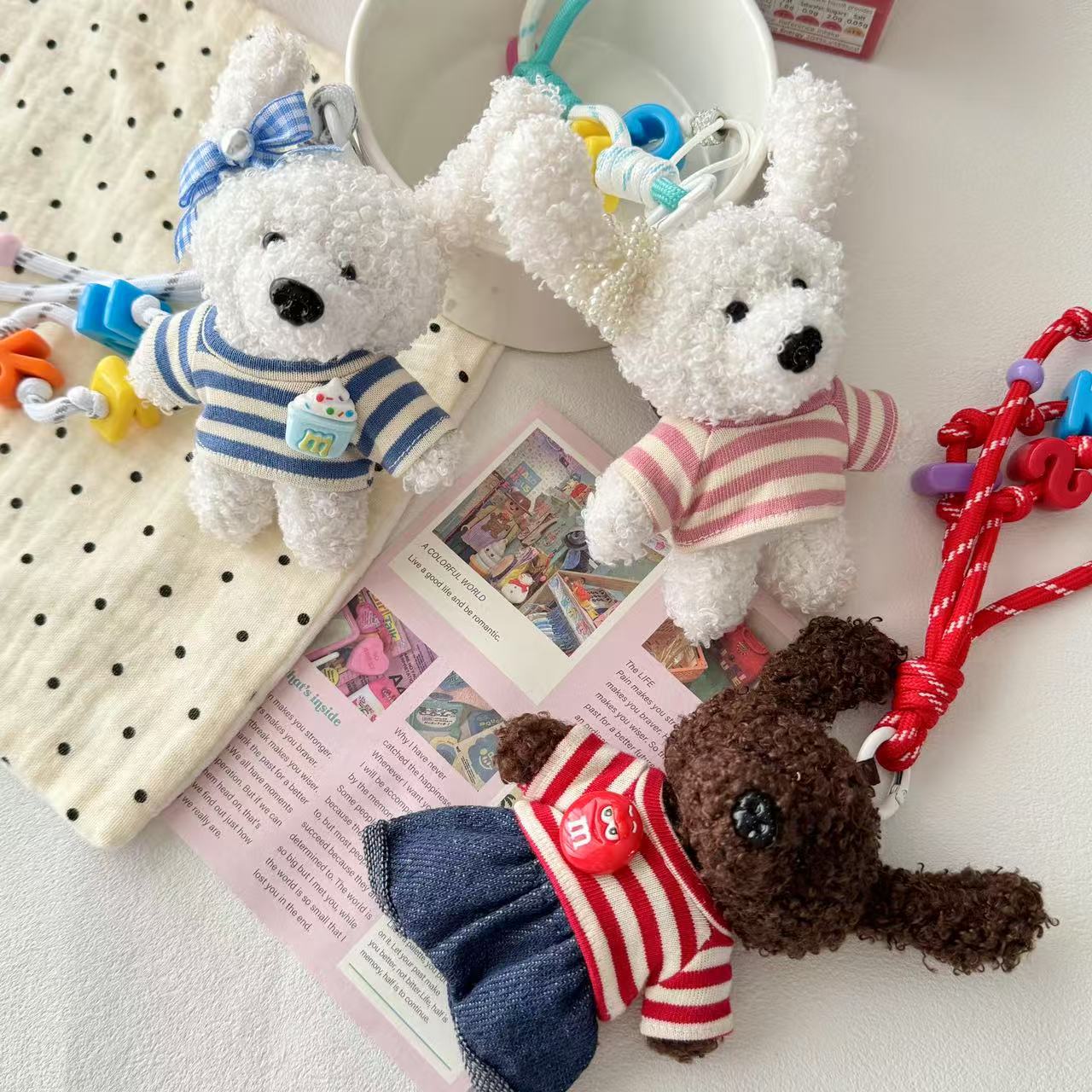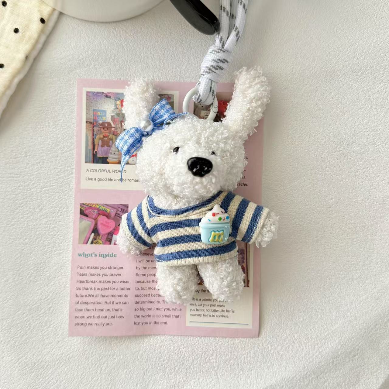 크림 아이스크림 강아지 펜던트 키 체인 인형 일본과 한국 순수한 봄과 여름 2025 새로운 소다 줄무늬 액세서리