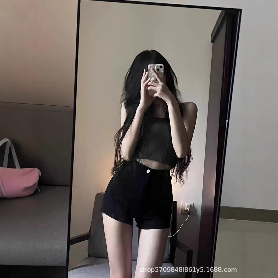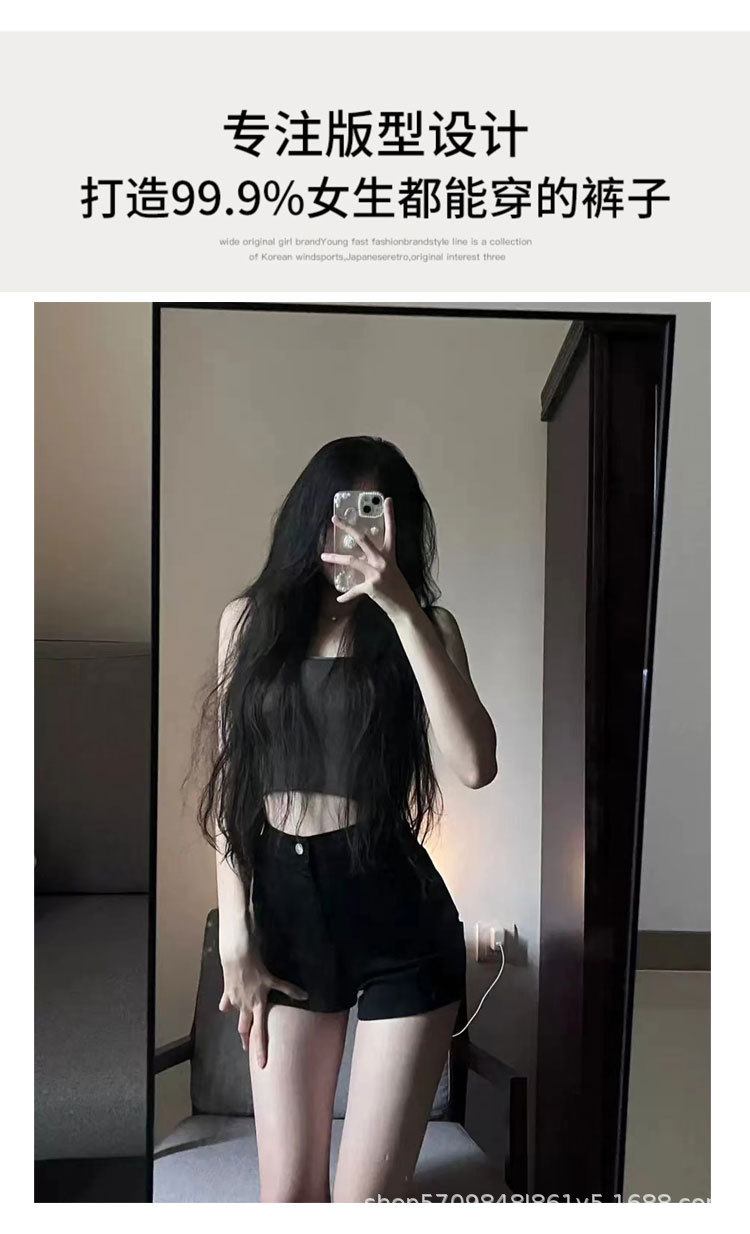 새로운 높은 허리 꽉 슬림 2025 여름 복고풍 엉덩이 뜨거운 바지 유행 검은 데님 반바지 여성의 높은 허리 뜨거운 소녀스토어 가기