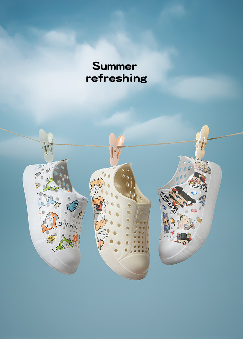 큰 구멍 두꺼운 바닥 어린이 구멍 신발 소년과 소녀 여름 만화 속이 빈 부모-자식 방수 샌들 해변 신발 도매스토어 가기