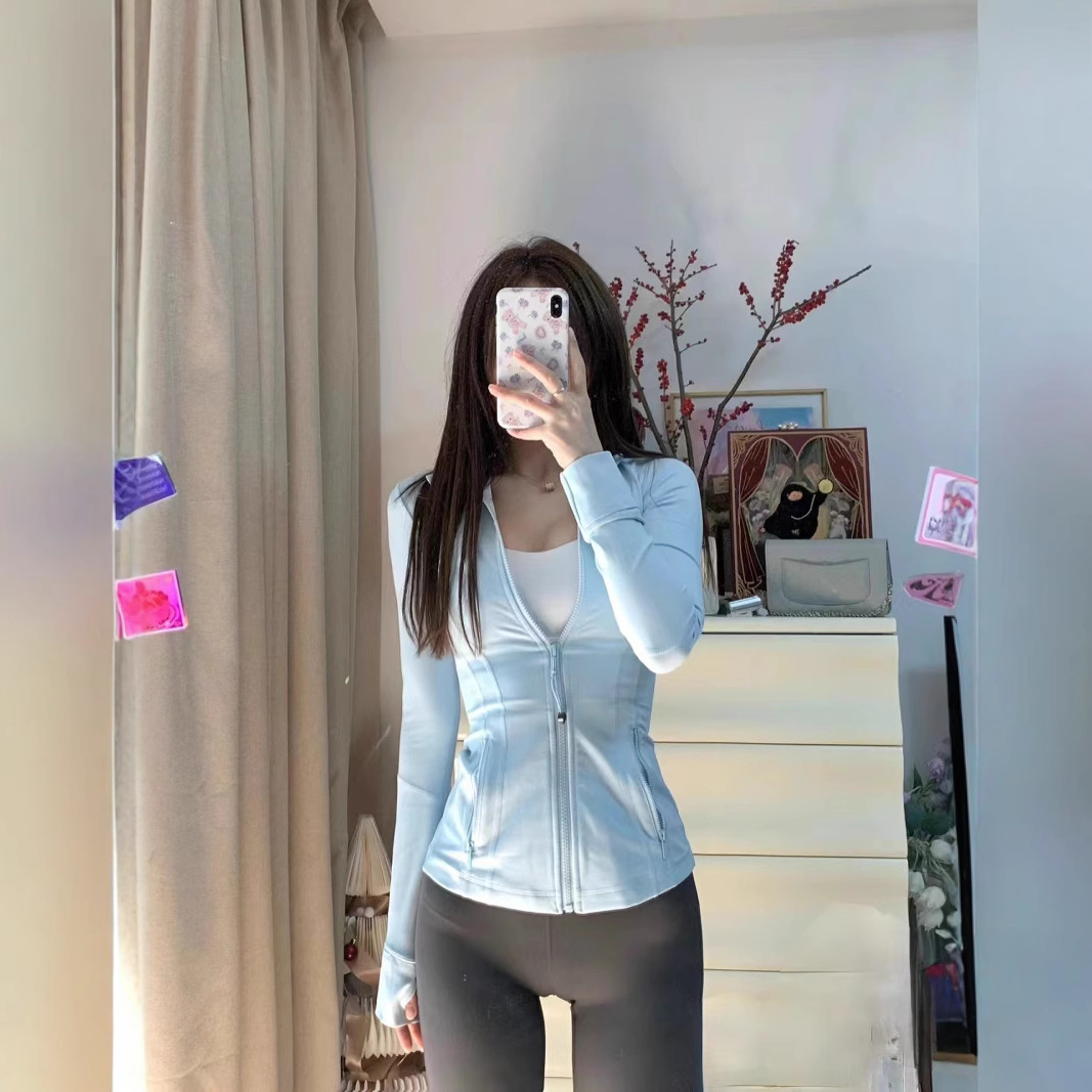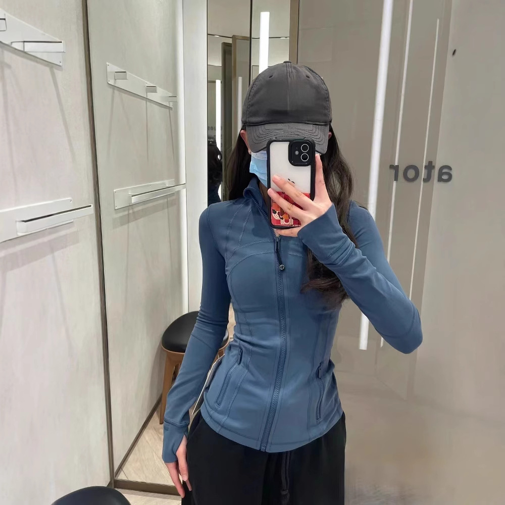 Lulu의 클래식 스탠드 칼라 재킷 여성 스포츠 코트 지퍼 카디건 긴팔 슬림 탑 요가웨어스토어 가기