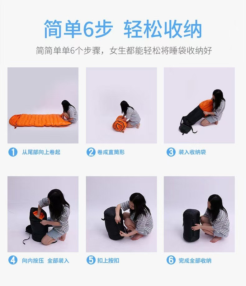 E5Y 새로운 야외 구스 다운 침낭 초경량 캠핑 다운 두꺼운 방한 및 따뜻한 낮잠 접합 더블 침낭스토어 가기