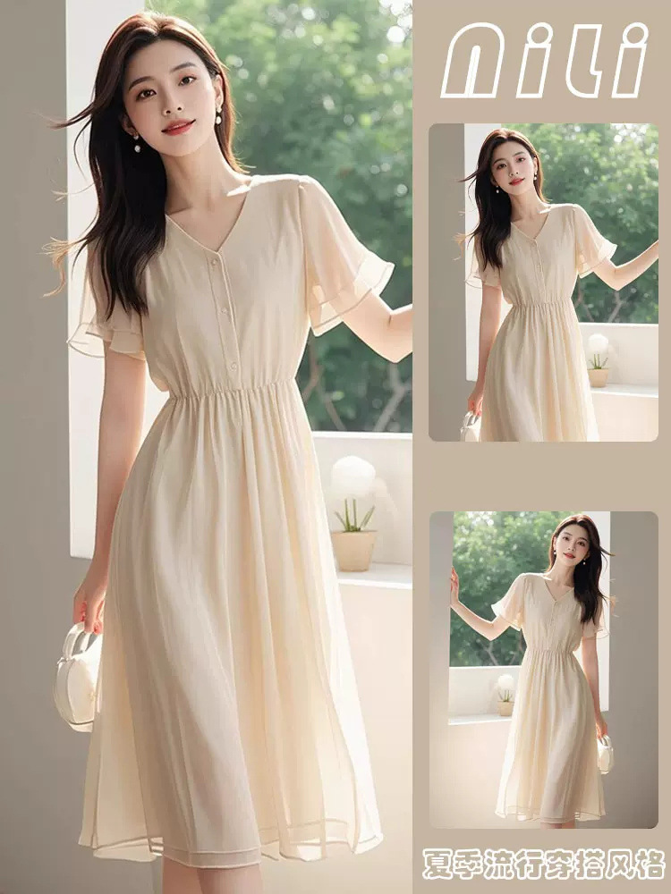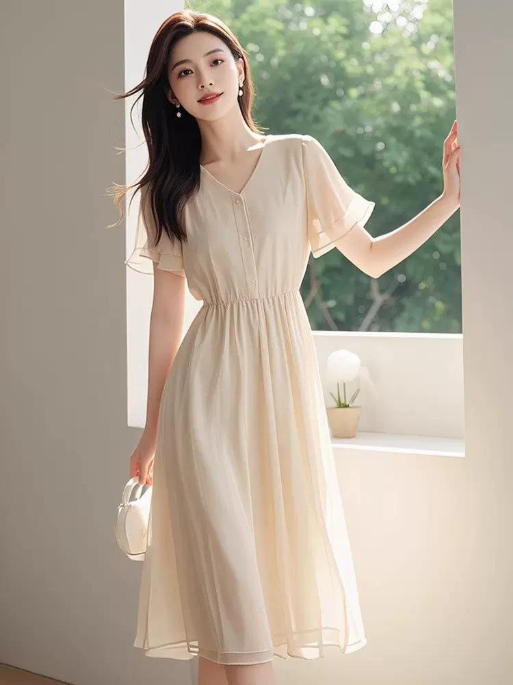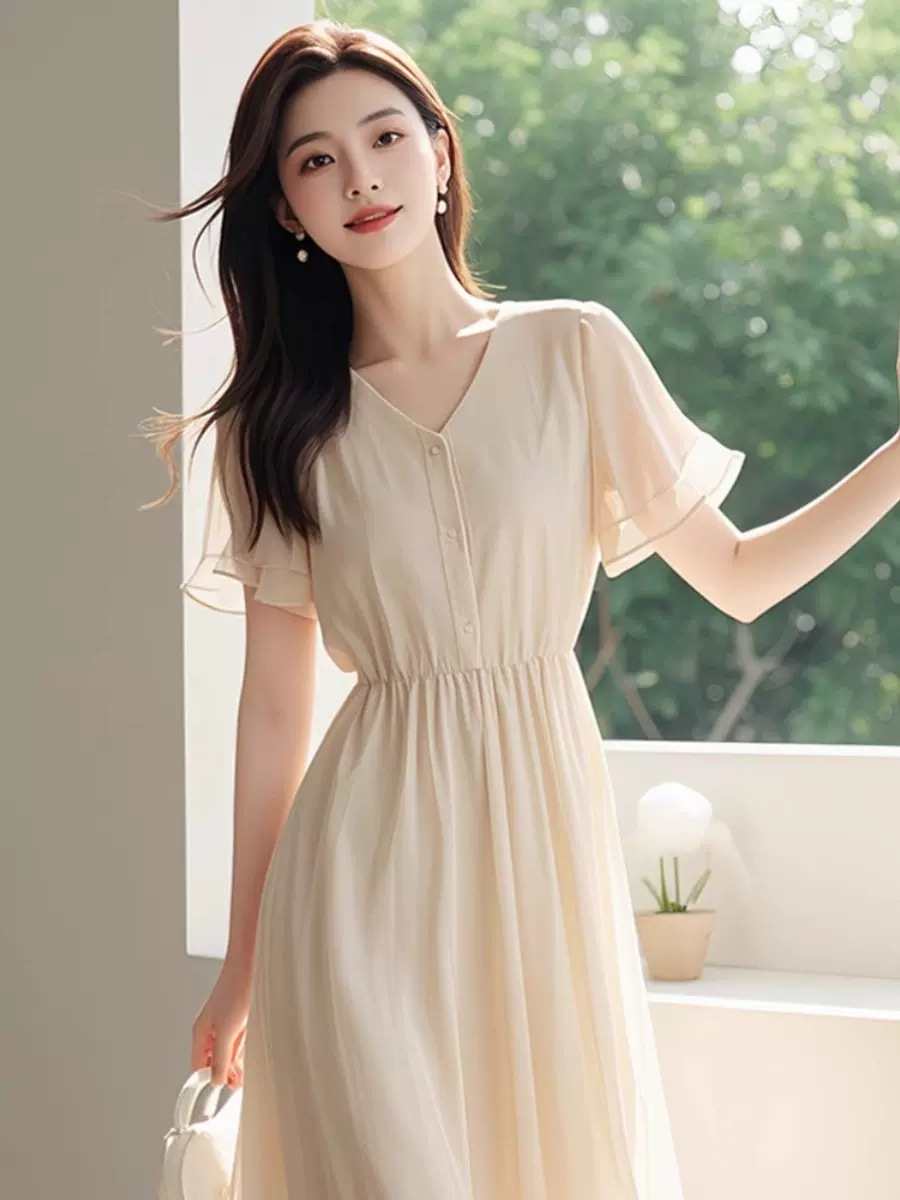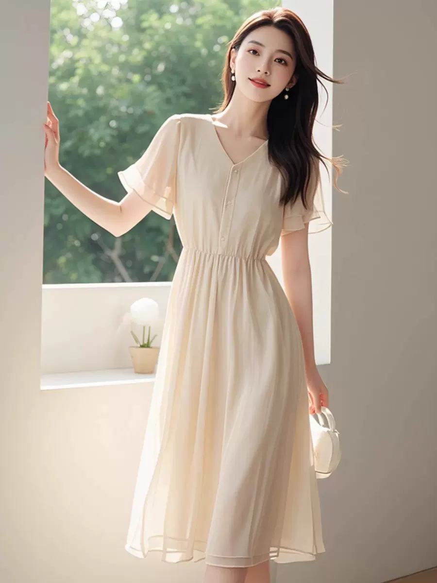 한국 스타일 우아하고 데이트 우아한 솔리드 컬러 V 넥 타이트 허리 슬림 원피스 여름 여성을위한 새로운 긴 원피스스토어 가기