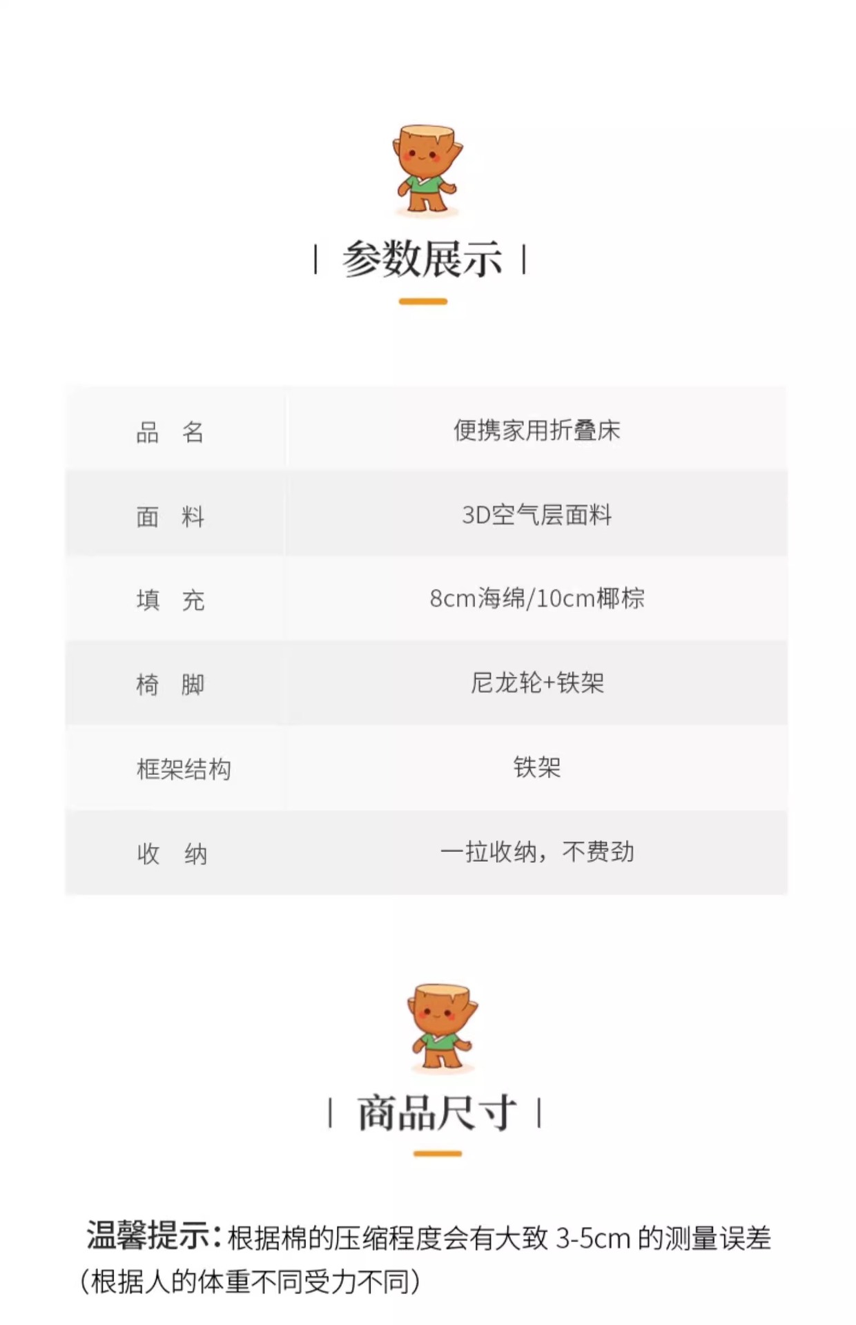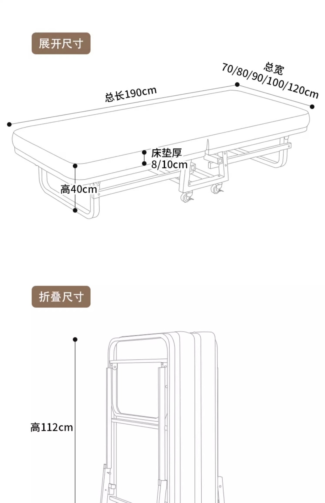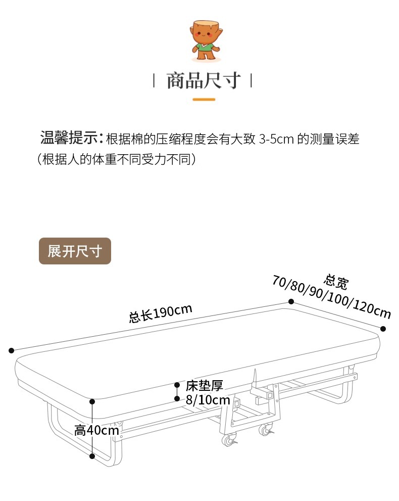 • [두꺼운 프레임 + 8CM 스펀지 매트리스] - 폭 80CM