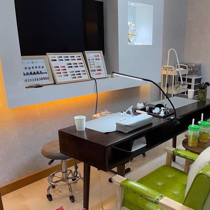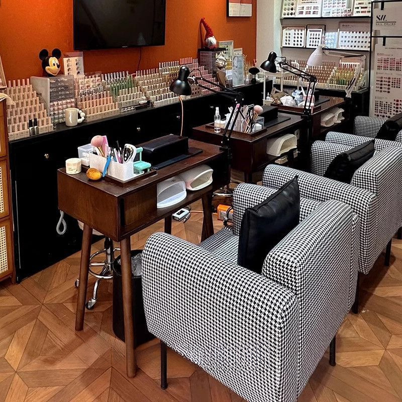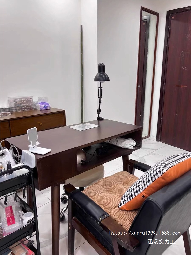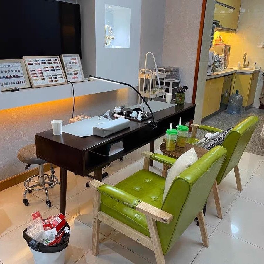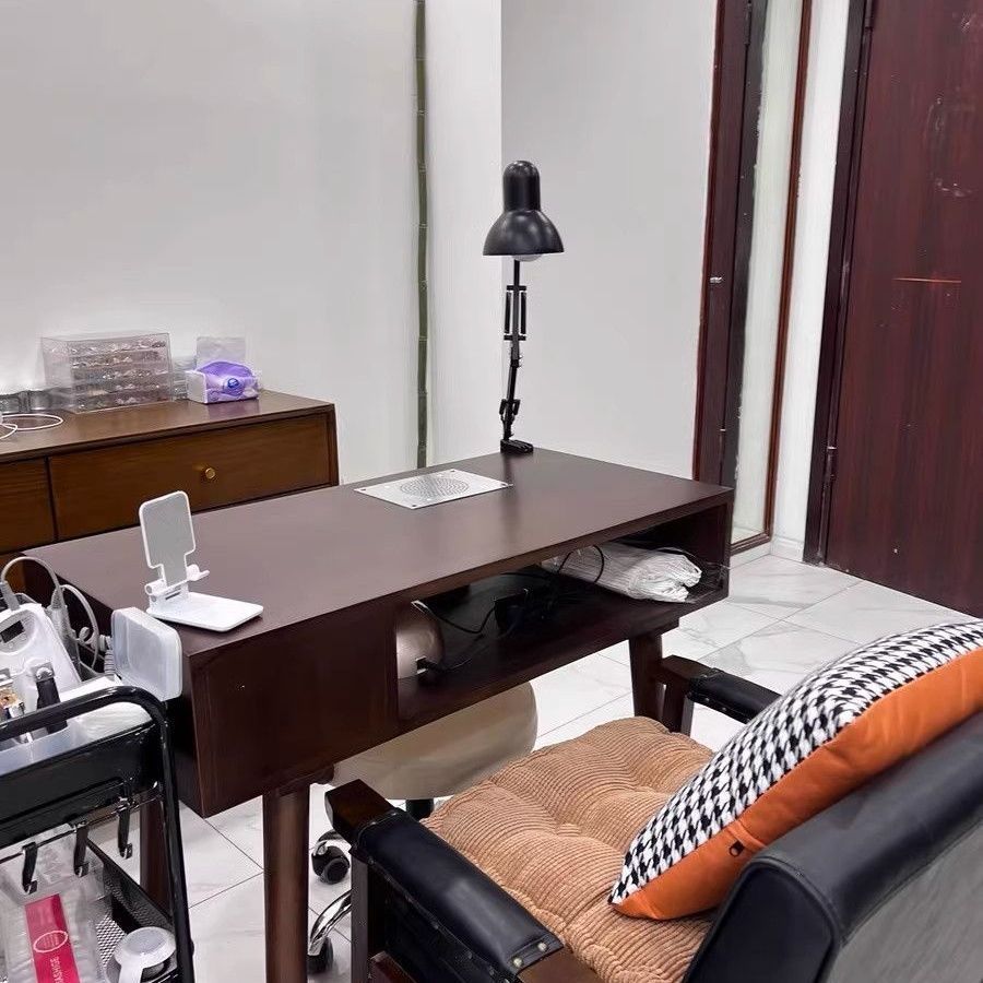 빈티지 네일 아트 테이블 솔리드 우드 네일 아트 테이블 싱글 더블 간단한 진공 청소기 깊은 호두 컬러 테이블과 의자 세트 경제적