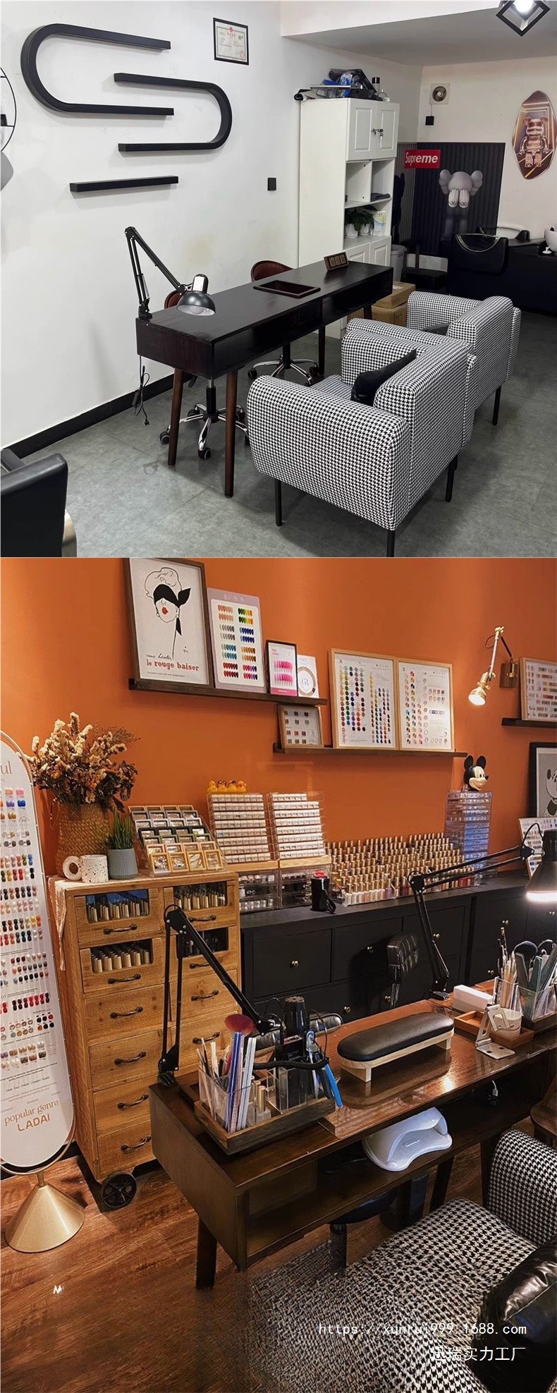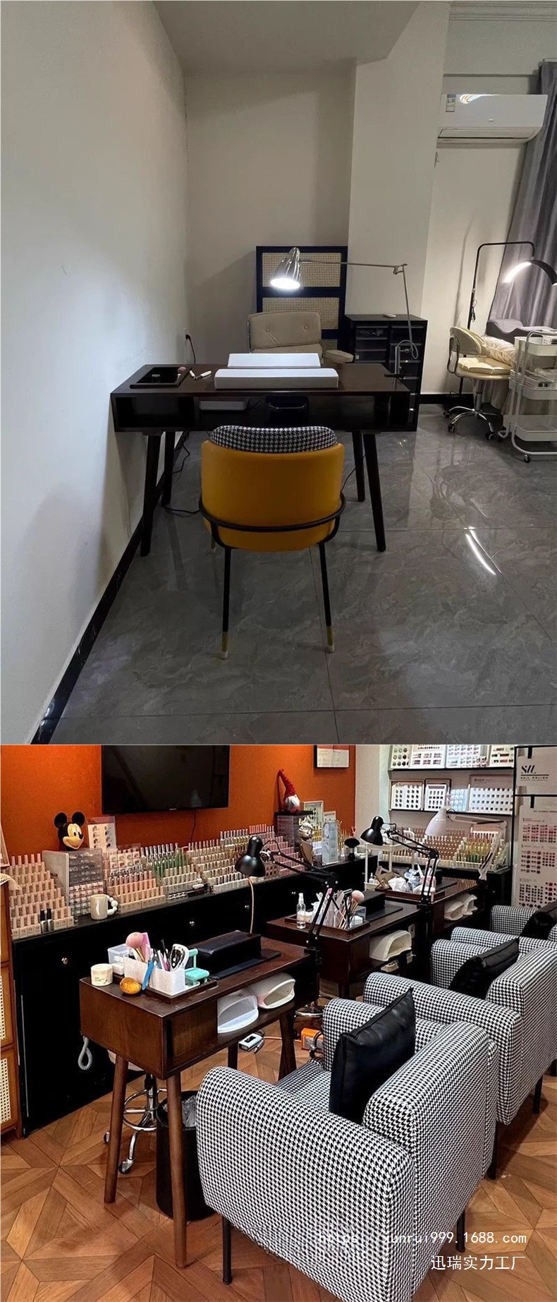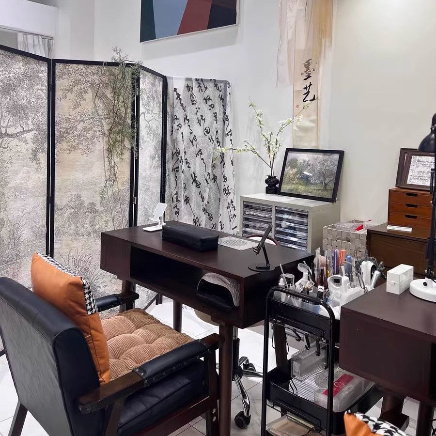 빈티지 네일 아트 테이블 솔리드 우드 네일 아트 테이블 싱글 더블 간단한 진공 청소기 깊은 호두 컬러 테이블과 의자 세트 경제적스토어 가기
