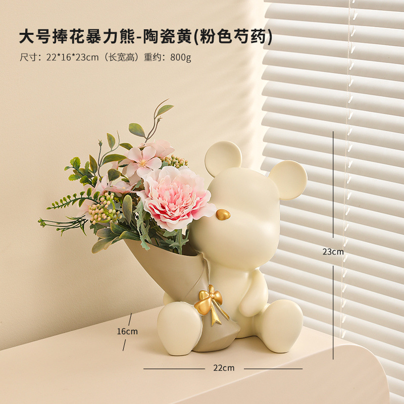 가벼운 고급 꽃다발, 폭력적인 곰 장식품, 현관, 거실, 현관, 침실 장식, 데스크탑 가짜 꽃꽂이