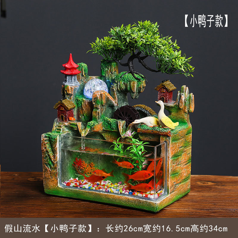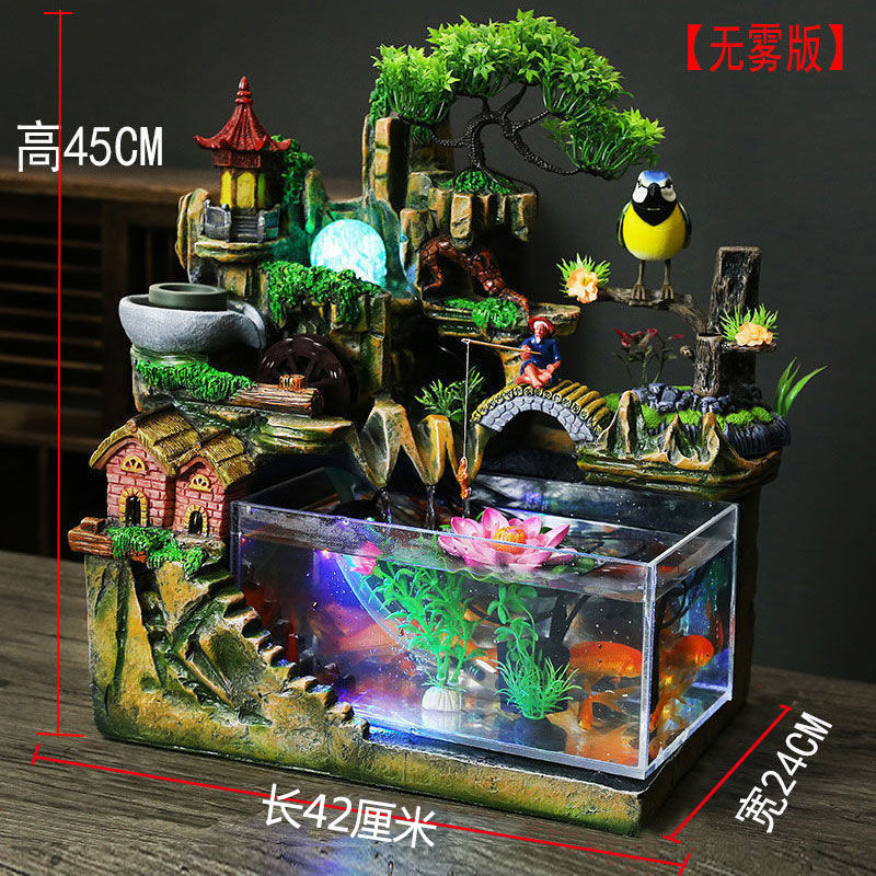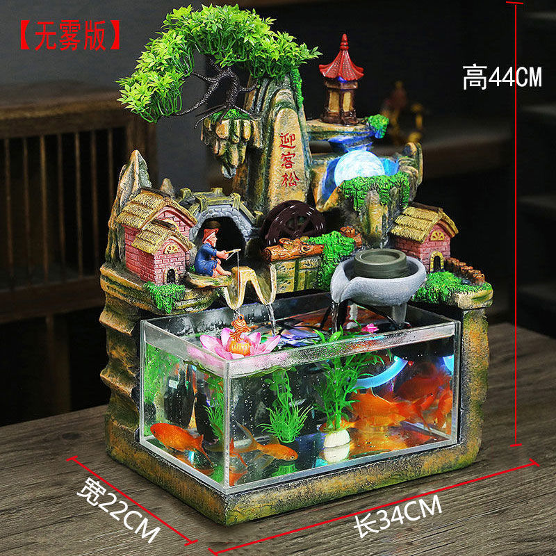 아크릴 수조 수족관, 가짜 바위, 흐르는 물 분수, 풍수 휠, 행운의 장식품, 거실 가정용 기기