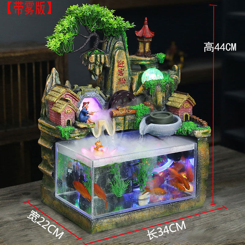 아크릴 수조 수족관, 가짜 바위, 흐르는 물 분수, 풍수 휠, 행운의 장식품, 거실 가정용 기기스토어 가기