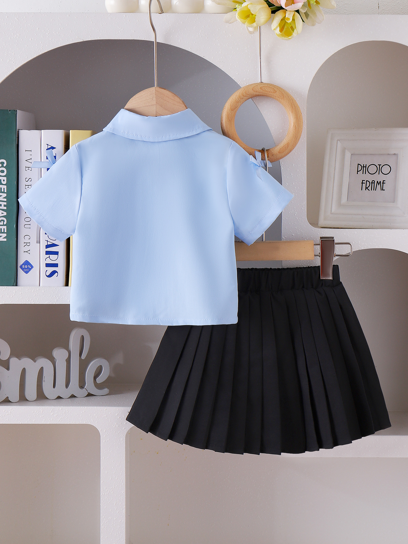 대외 무역 국경 유럽 및 미국 여름 대학 스타일 소녀 세트 어린이 옷깃 활 셔츠 주름 치마 치마스토어 가기