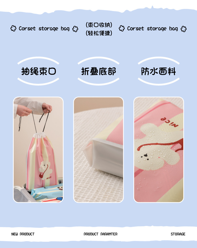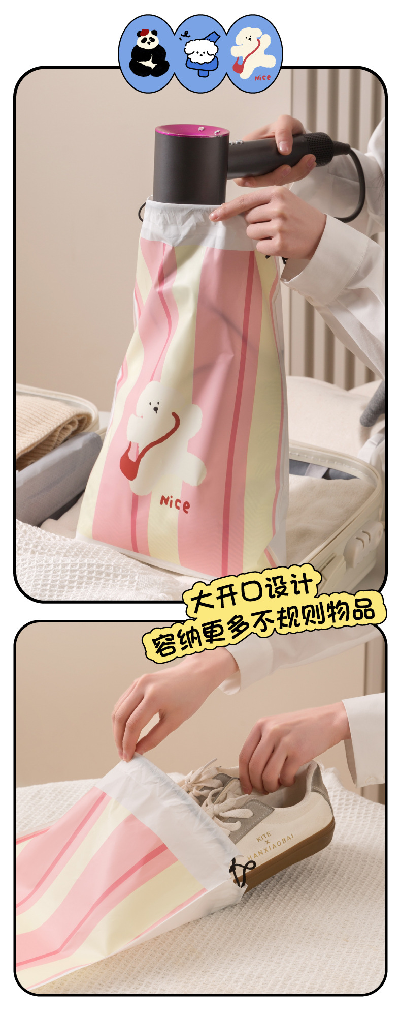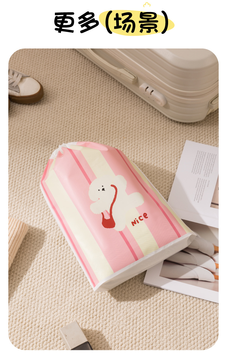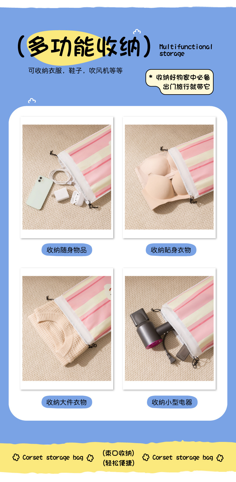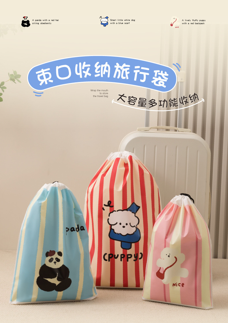 한국 만화 조임끈 수납 가방, 귀여운 줄무늬 프린트 조임끈 정리 가방, 여행 세면 용품 및 화장품 수납 가방스토어 가기