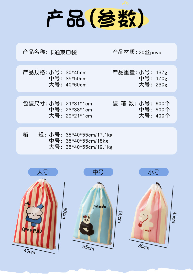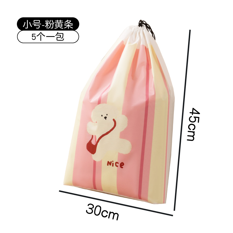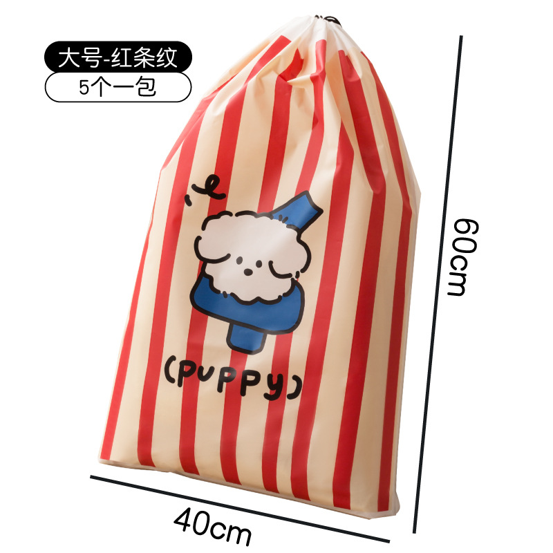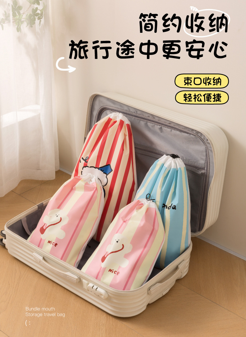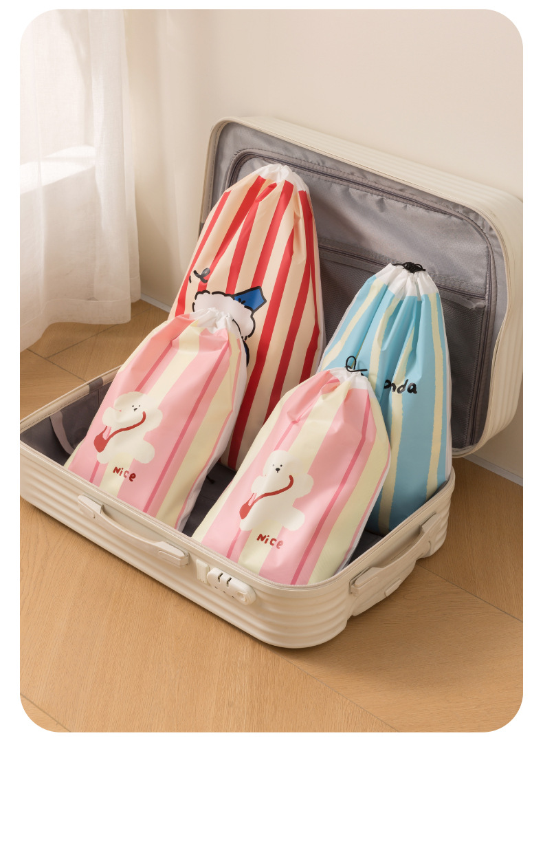 한국 만화 조임끈 수납 가방, 귀여운 줄무늬 프린트 조임끈 정리 가방, 여행 세면 용품 및 화장품 수납 가방
