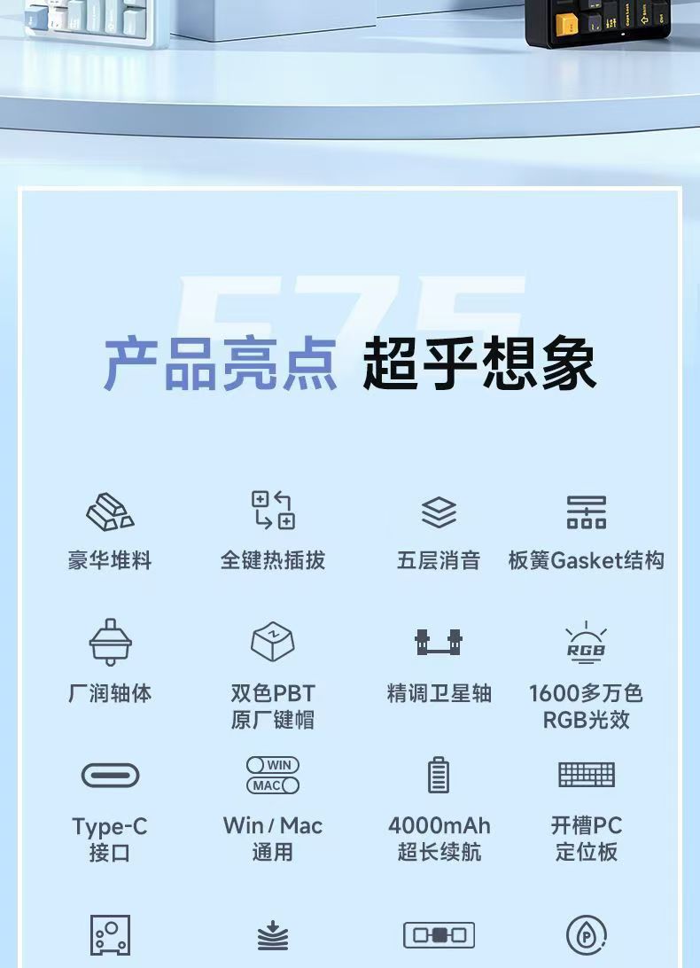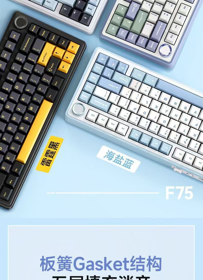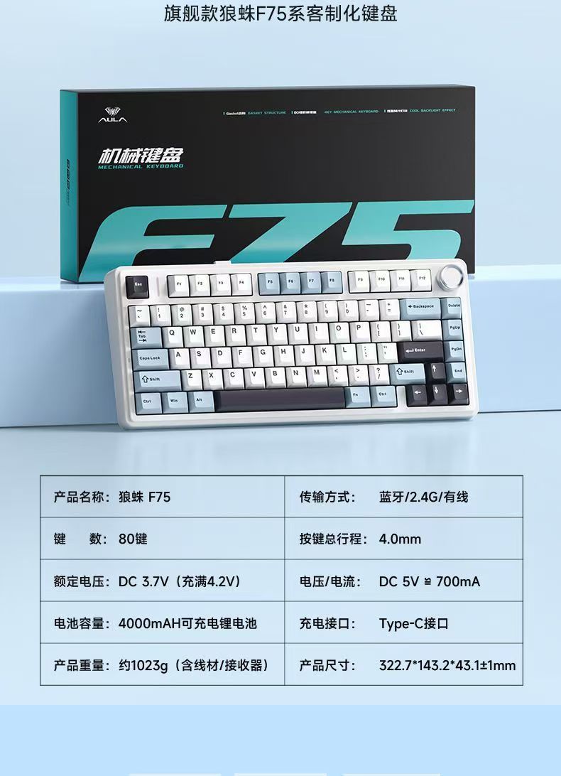 Wolf Spider(AULA) F75 맞춤형 기계식 키보드 가스켓 구조 전체 키 핫 스왑 가능 무선 3 모드에 적합스토어 가기
