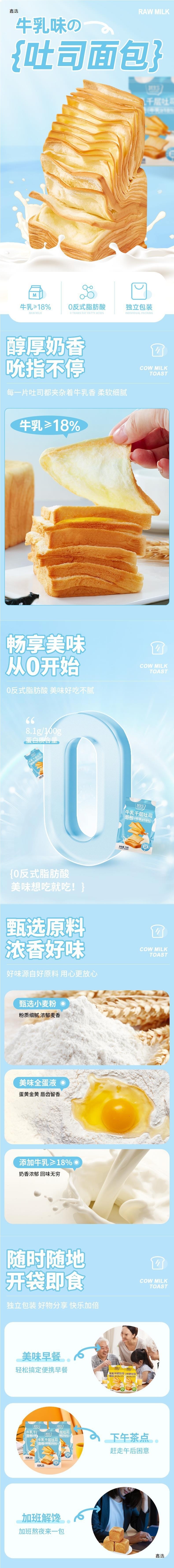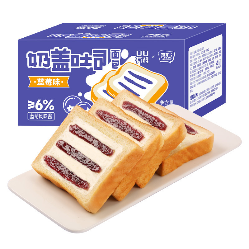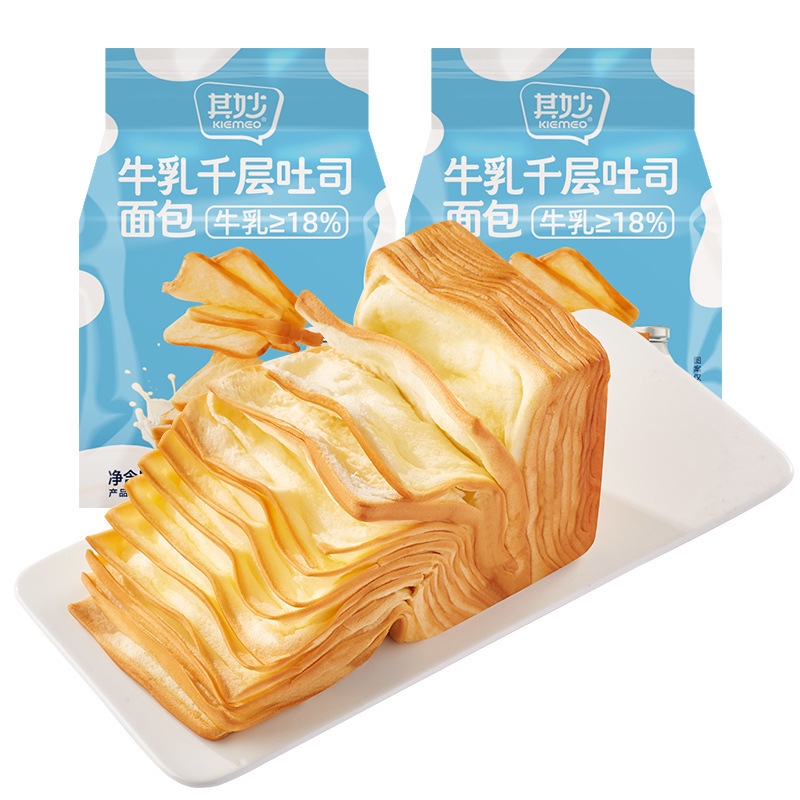 무료 배송 Qimiao 우유 천 겹 토스트 빵 상자 75g * 4 조각 아침 식사 대체 포만감 간식 스낵 식품스토어 가기