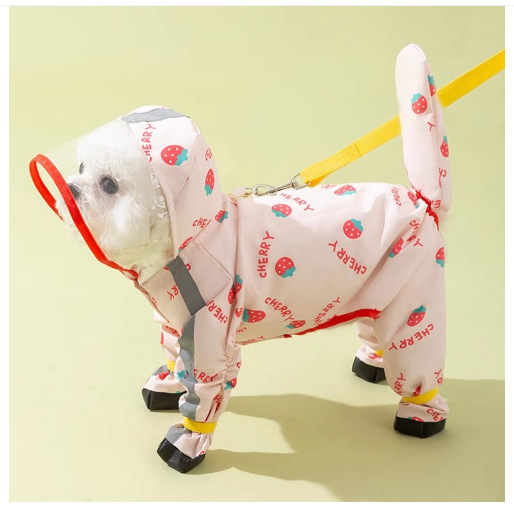 비극적 인 개 네 다리 비옷 방수 모든 것을 포함하는 작은 개 Bichon Teddy 애완 동물 비오는 날 옷스토어 가기