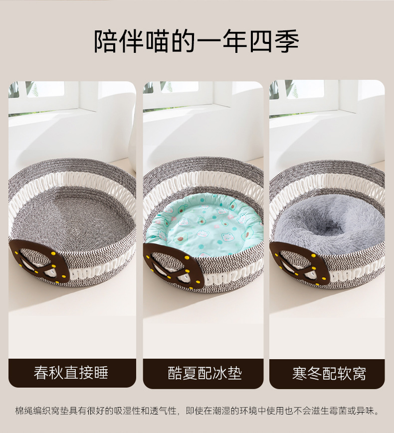 고양이 봄과 여름 알칼리성 물 빵 밧줄 짜기 고양이 둥지 사계절 유니버설 작은 개 테디 사육장 둥지 둥지스토어 가기