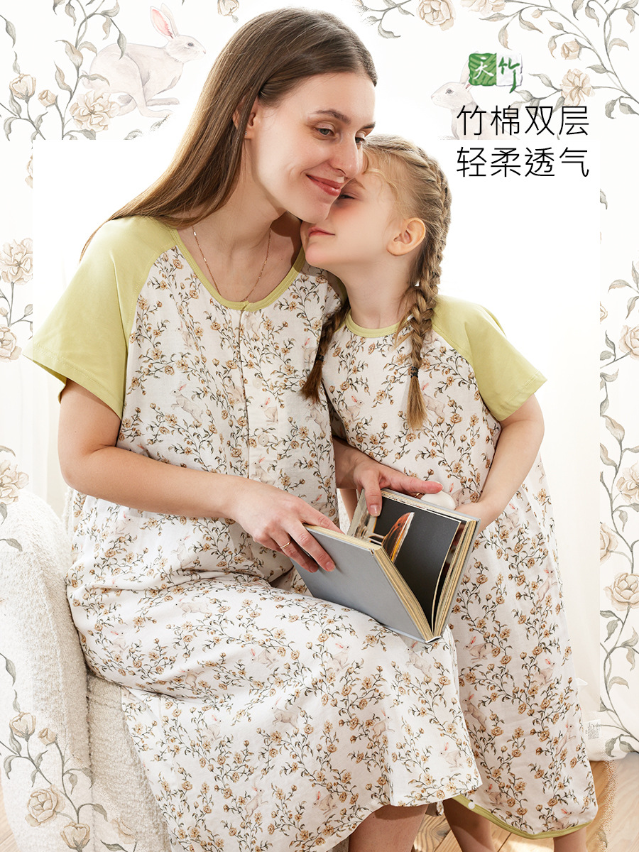 대나무 코튼 거즈 아기 어린이 여름 경량 슬리핑 백 통기성 항균 에어컨 룸 홈 의류 부모-어린이 나이트 가운