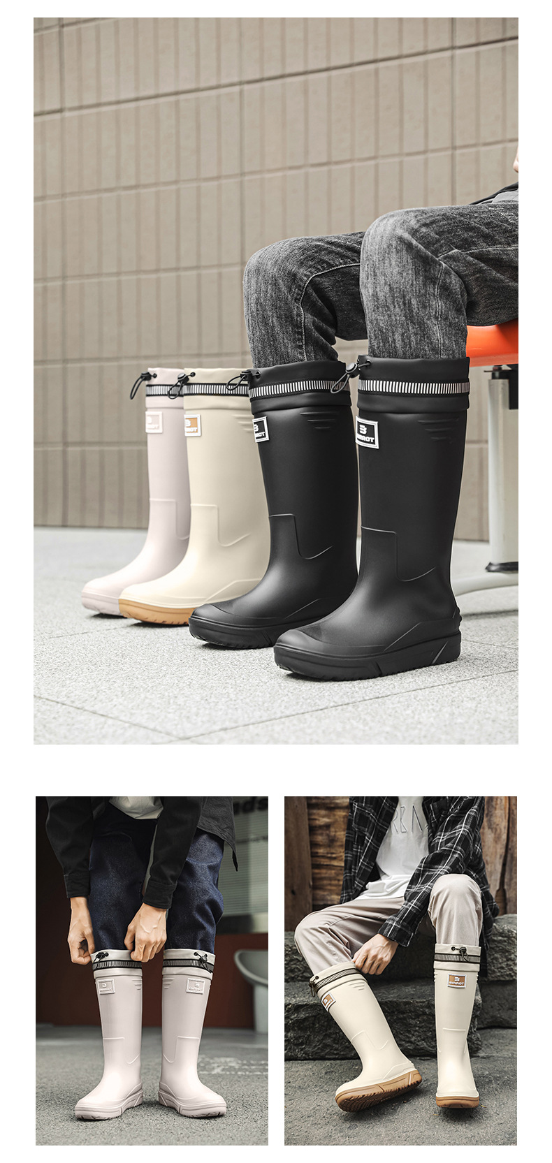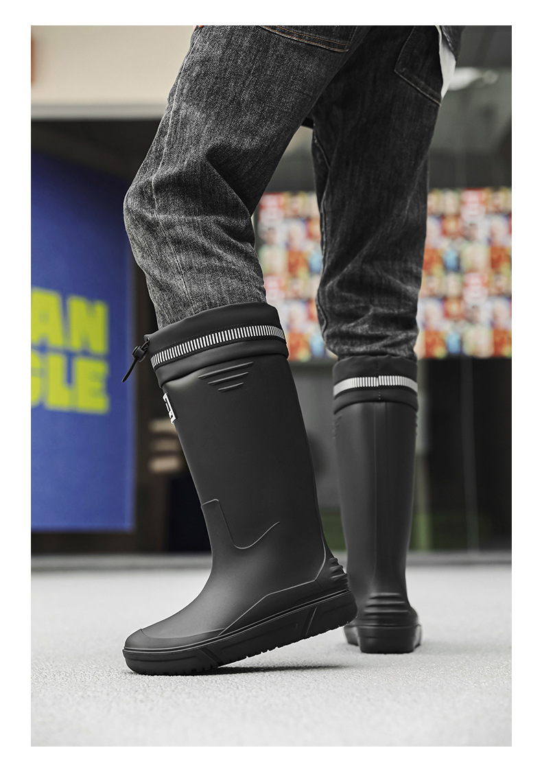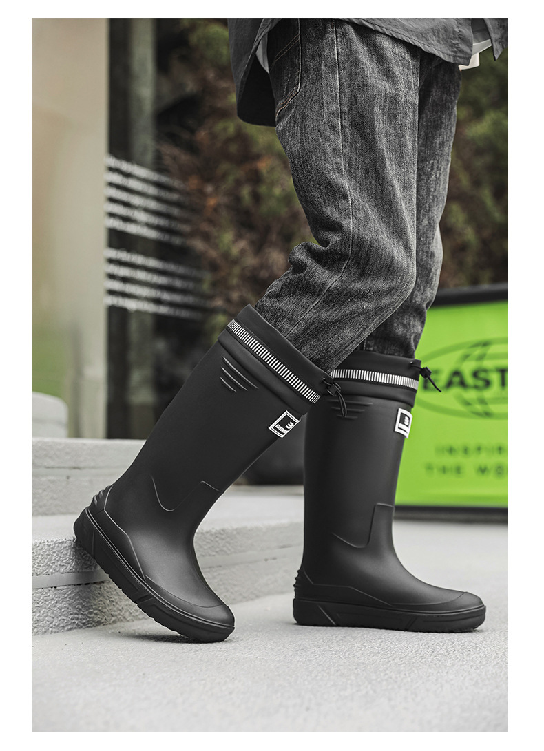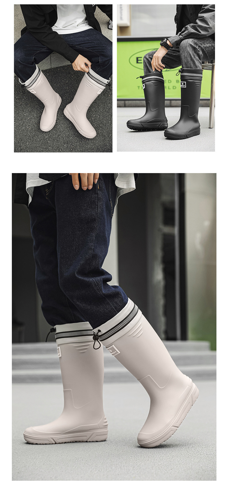 하이탑 남성용 장화, 미드탑 장화, 부드러운 밑창 미끄럼 방지 방수 부츠, 야외용 두꺼운 밑창 캐주얼 남성용 방수 신발스토어 가기