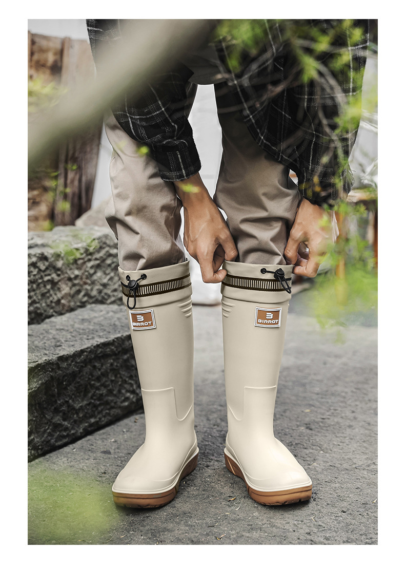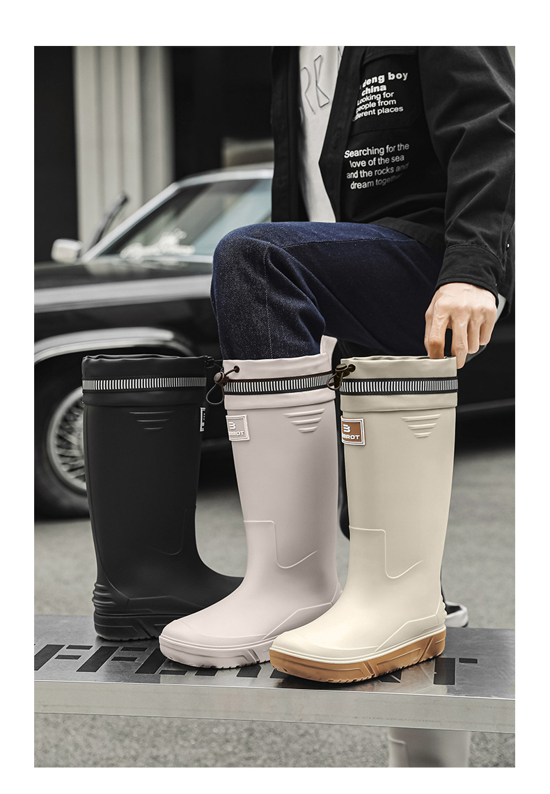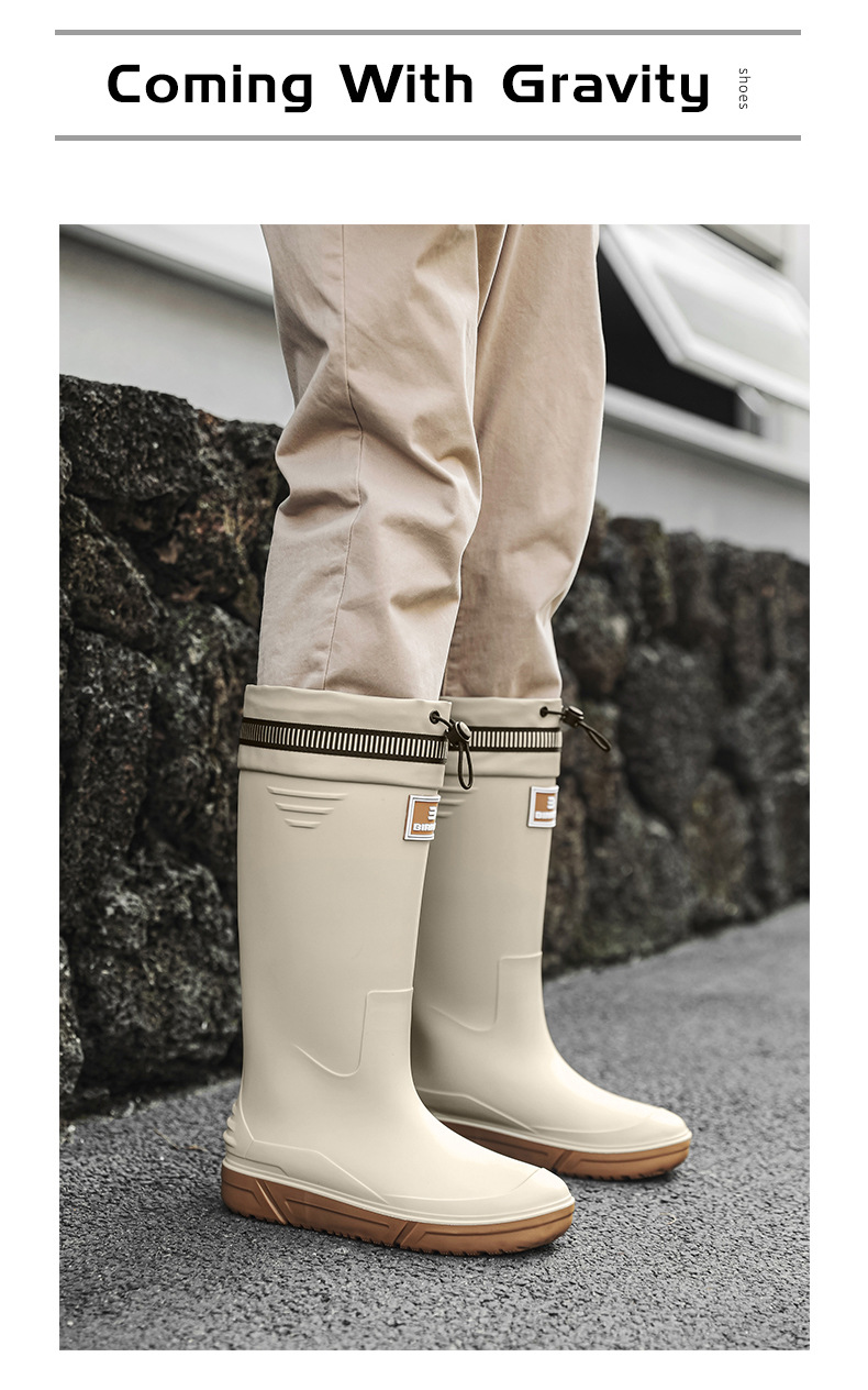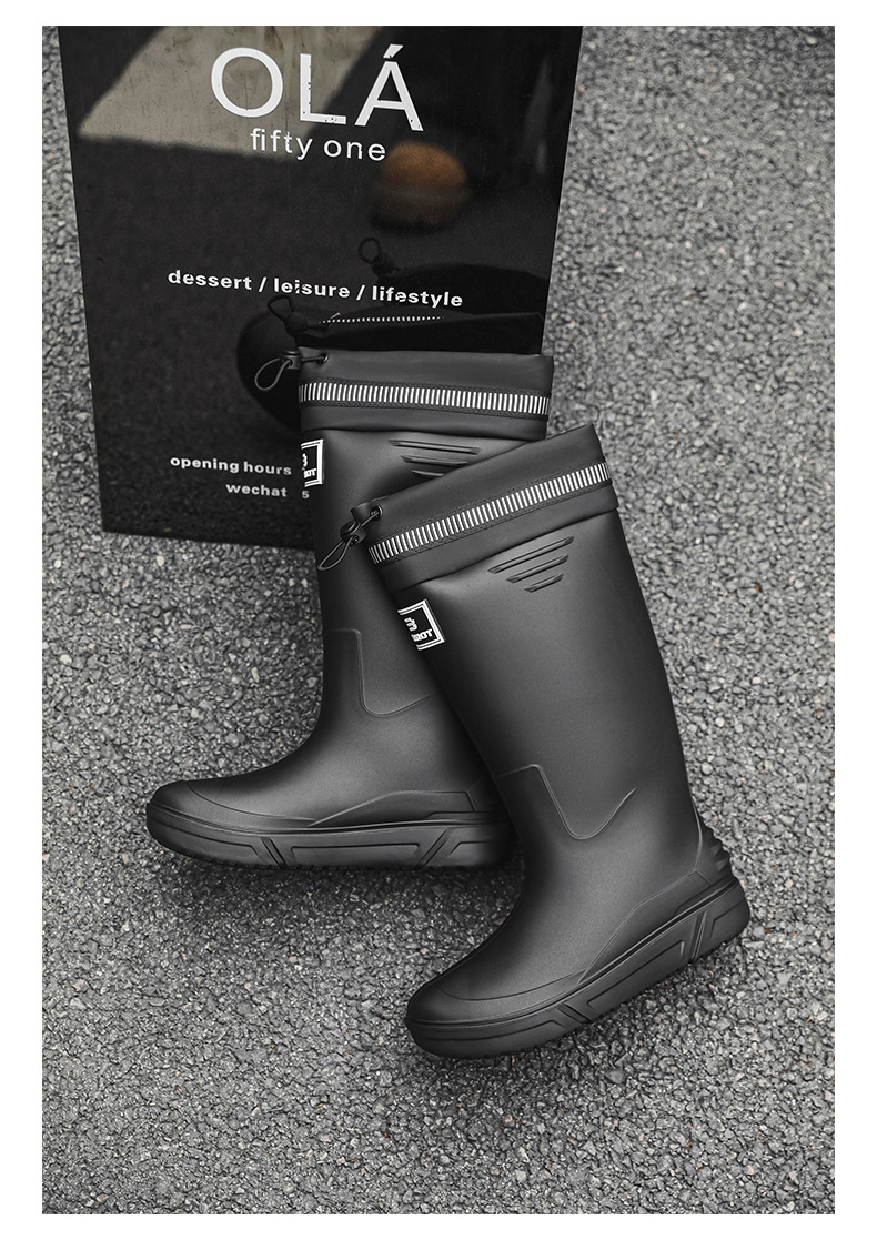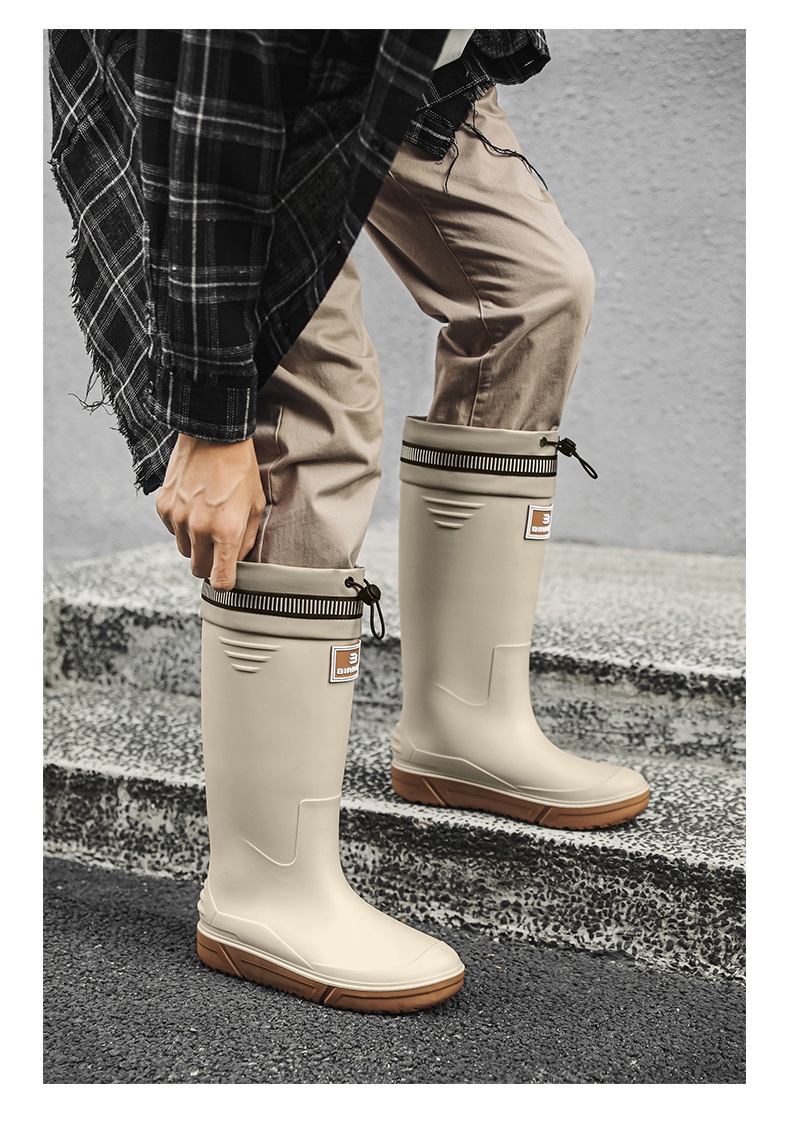 하이탑 남성용 장화, 미드탑 장화, 부드러운 밑창 미끄럼 방지 방수 부츠, 야외용 두꺼운 밑창 캐주얼 남성용 방수 신발스토어 가기