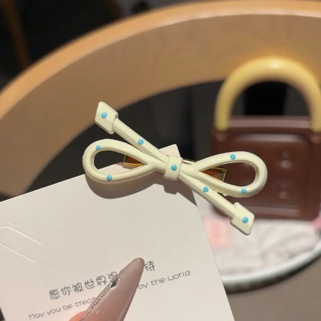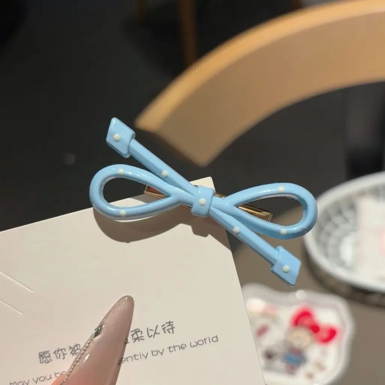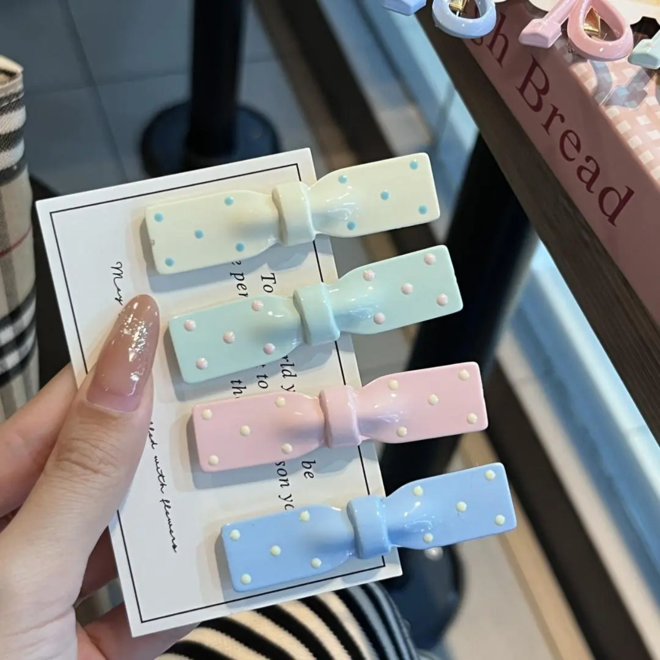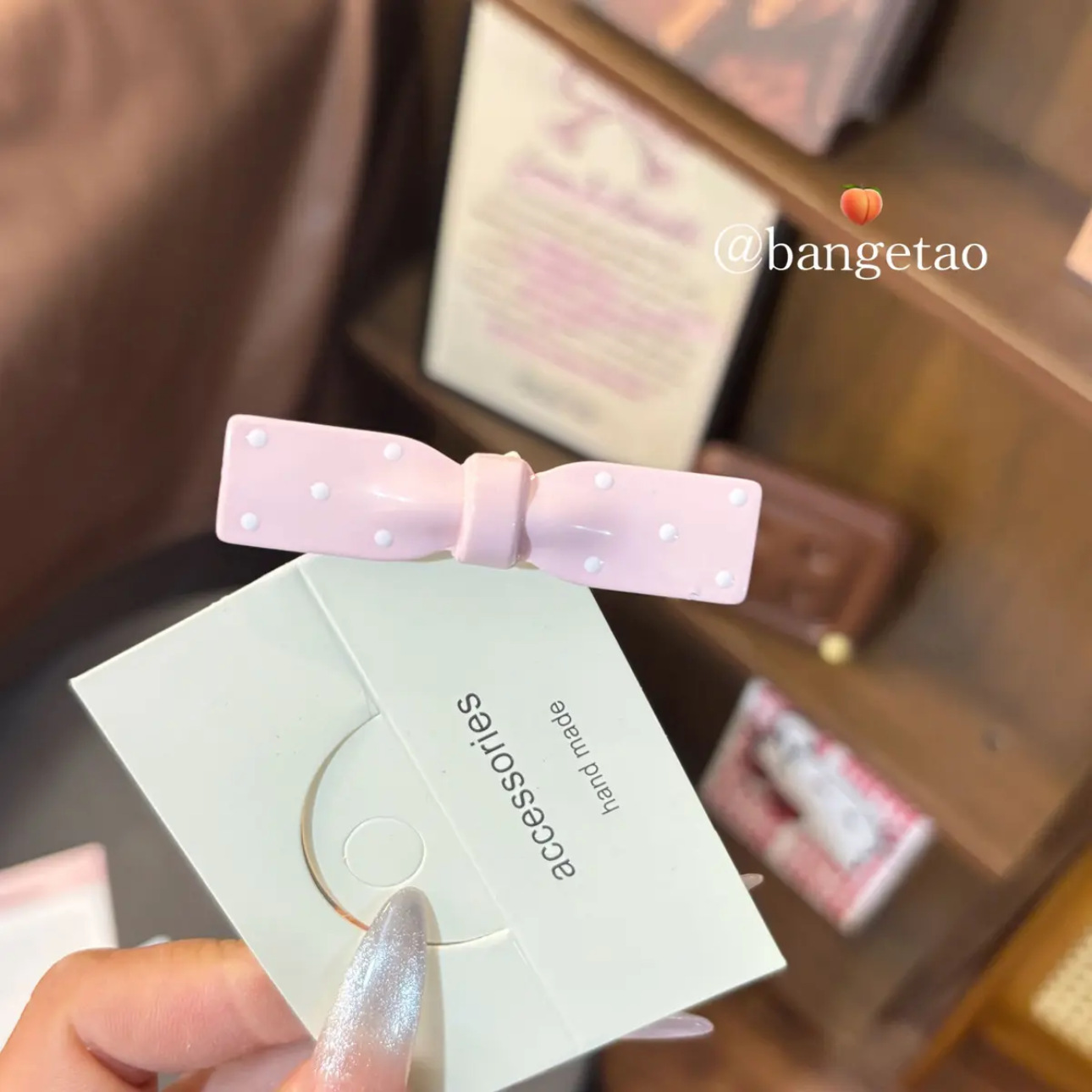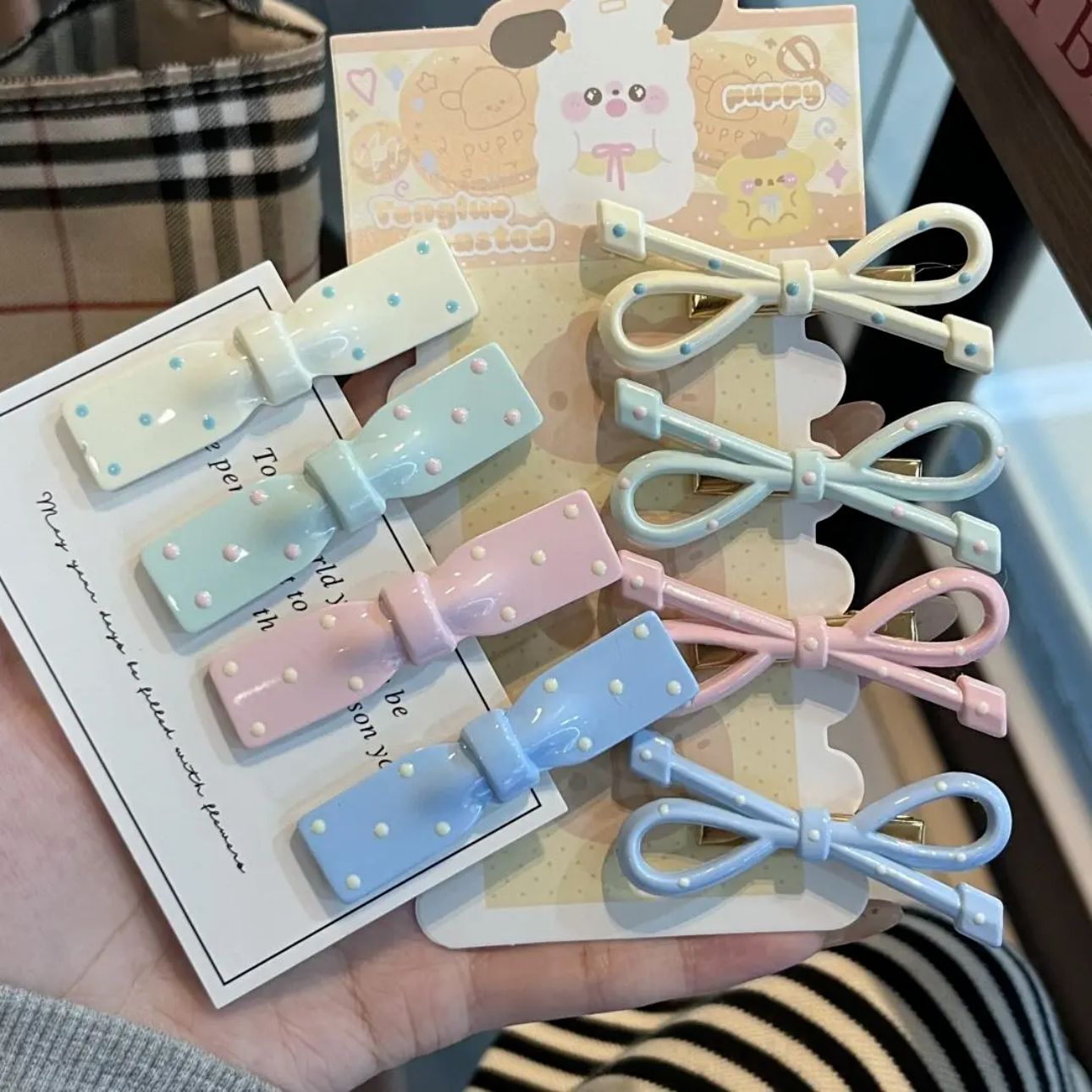 한국 달콤한 폴카 도트 활 머리핀 여성용 프린지 헤어 덕빌 후크 헤어핀 헤드웨어