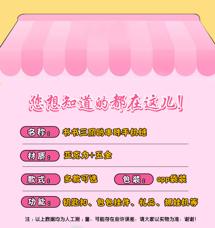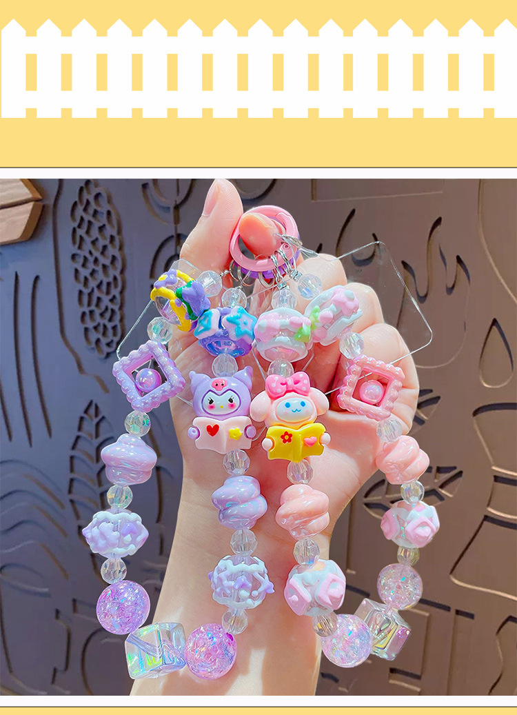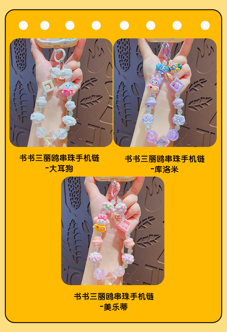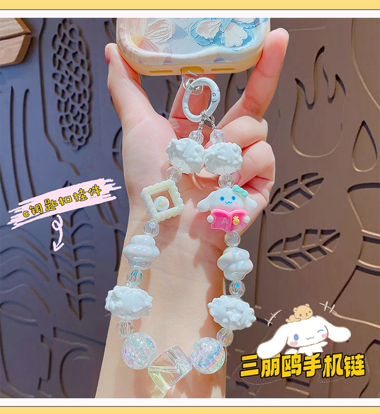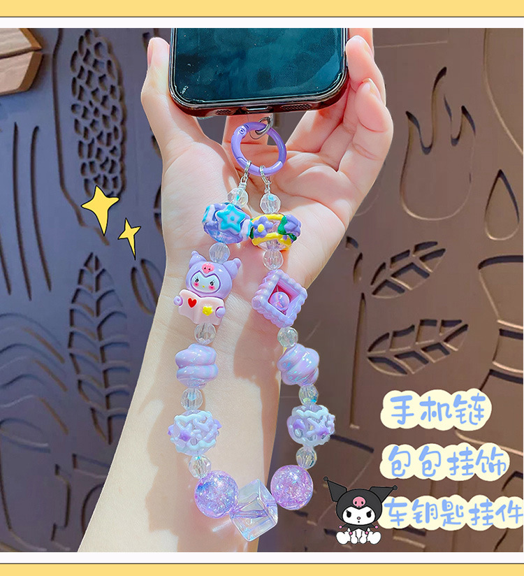 만화 산리오 구슬 휴대 전화 체인 키 체인 가방 펜던트 커플 쿨로 미 키 체인 교수형 작은 선물스토어 가기