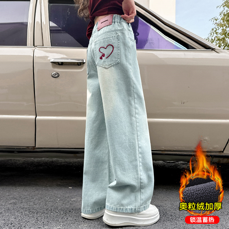여아 바지 봄 가을 2025 신상 유행 아동 청바지 가을 겨울 기모 스트레이트 팬츠 여아 와이드 팬츠
