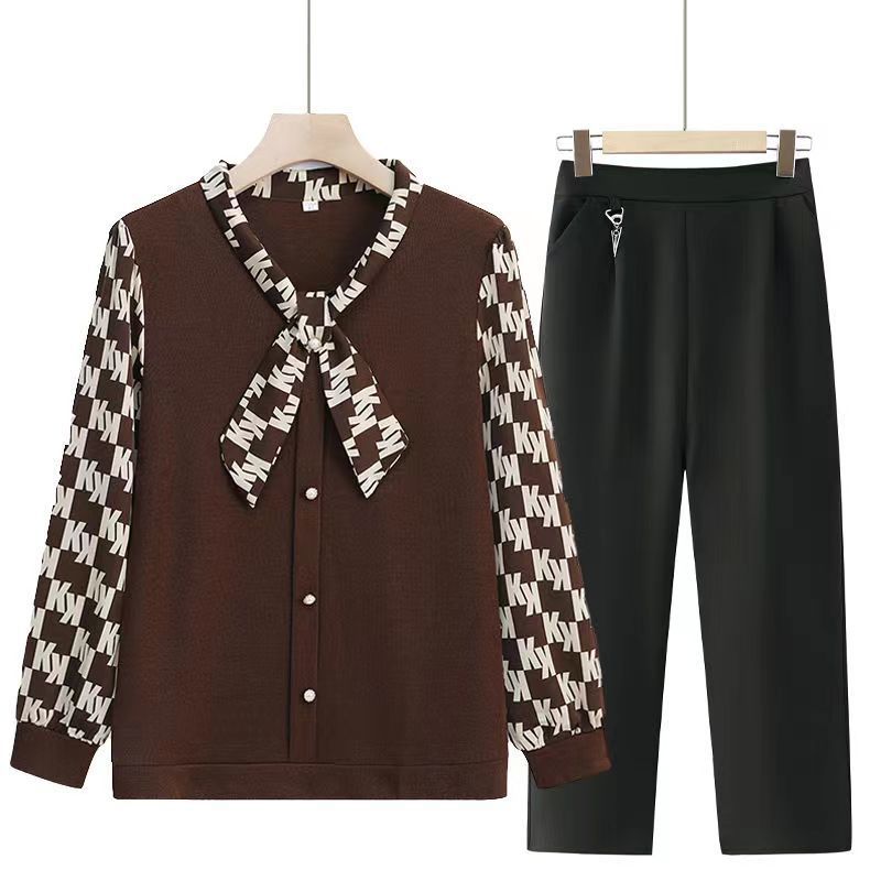 중년 어머니 가을 코트 긴팔 셔츠 2025 새로운 중년 및 노인 여성의 봄과 가을 기본 셔츠 외국 스타일 세트