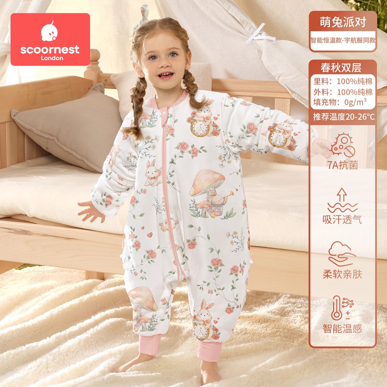 • 에어컨 룸 전용 & 순면 100% 봄, 가을 얇은 모델 [봄, 가을 더블 레이어, 실내 온도 20-26℃]귀여운 토끼 파티