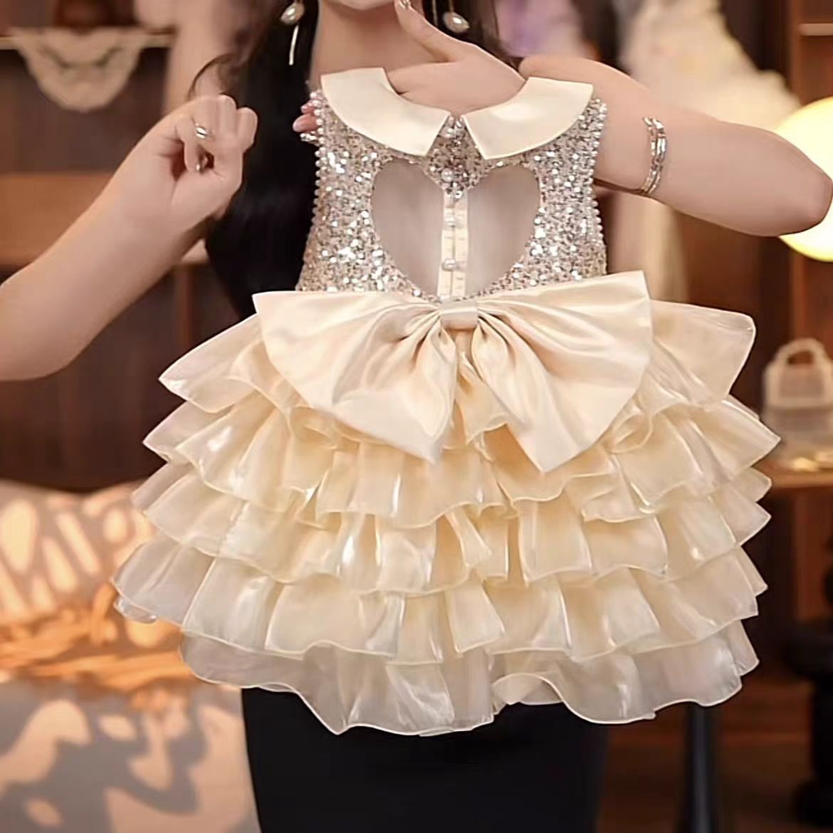 소녀 슬링 원피스 여름 2025 새로운 어린이 공주 원피스 스타일 아기 생일 원피스 케이크 원피스스토어 가기