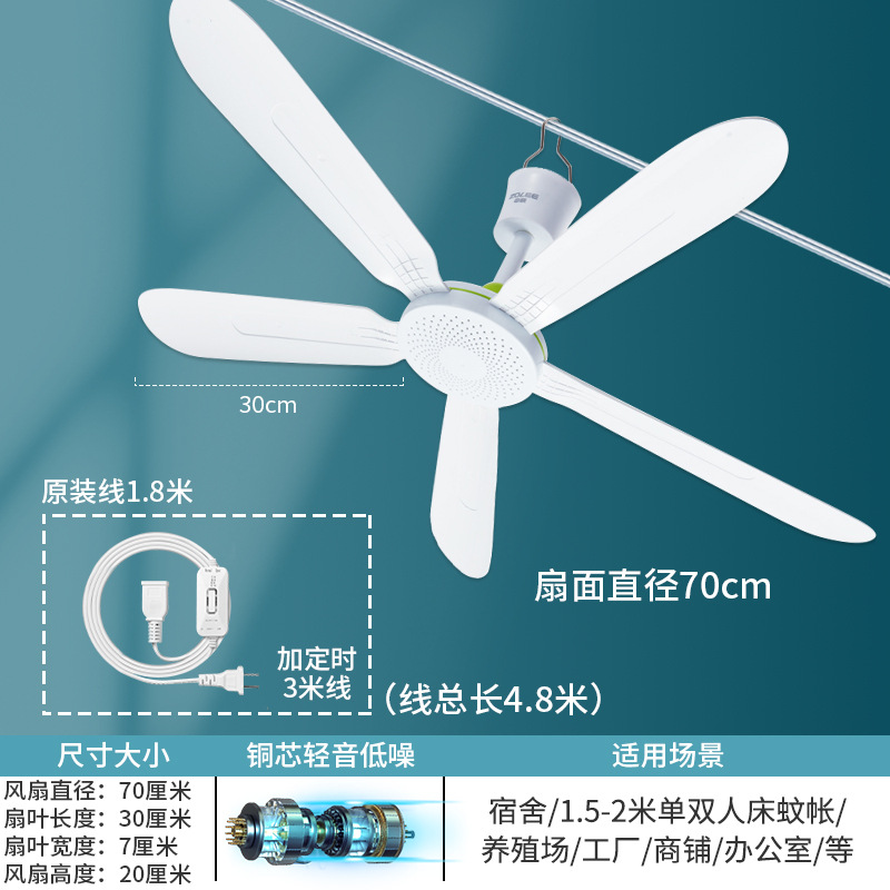 작은 천장 팬 가정용 기숙사 침대 플라스틱 5 잎 큰 바람 음소거 작은 거실 모기장 전기 팬