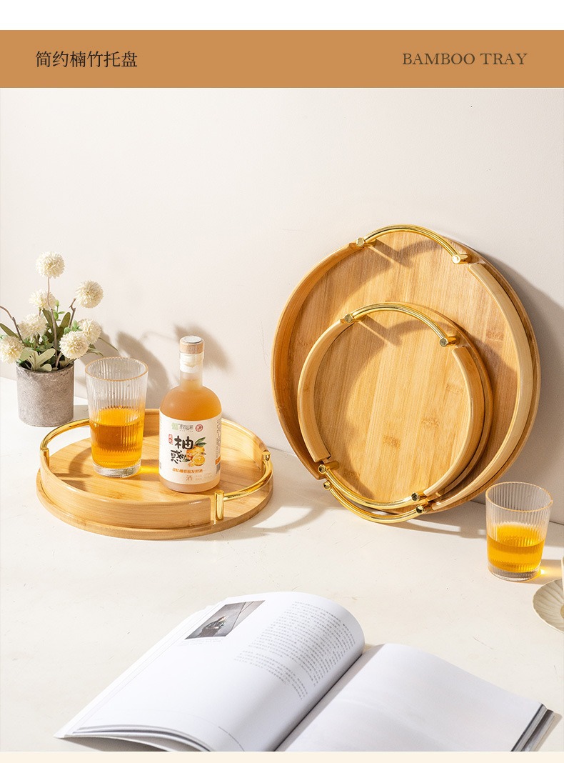 대나무 둥근 쟁반 가정용 거실 차 컵 저장 쟁반 세트 다이닝 트레이 창조적 인 과일 접시스토어 가기