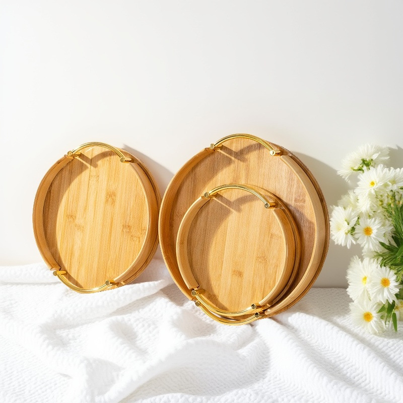 대나무 둥근 쟁반 가정용 거실 차 컵 저장 쟁반 세트 다이닝 트레이 창조적 인 과일 접시