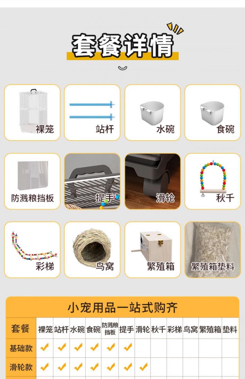• 투명 방수 새장 [표준 패키지] 5종 세트, 중소형 새 2~3마리 키울 수 있음