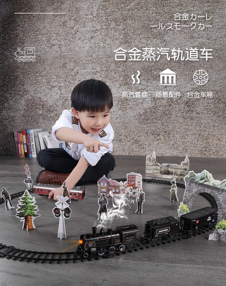 소년 소녀를위한 전기 레트로 증기 기차 장난감 스프레이 어린이 시뮬레이션 가변 트랙 레일 고속 철도 국경스토어 가기