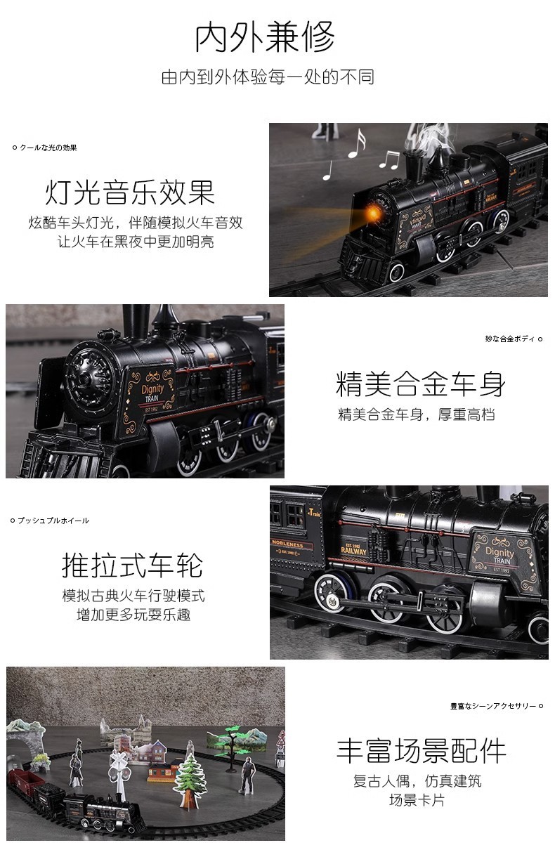 소년 소녀를위한 전기 레트로 증기 기차 장난감 스프레이 어린이 시뮬레이션 가변 트랙 레일 고속 철도 국경