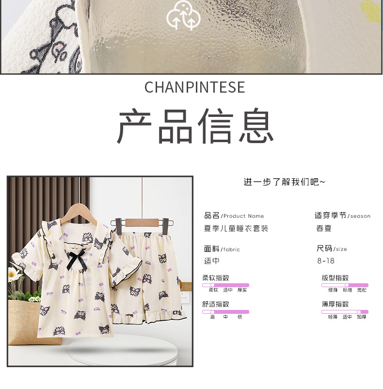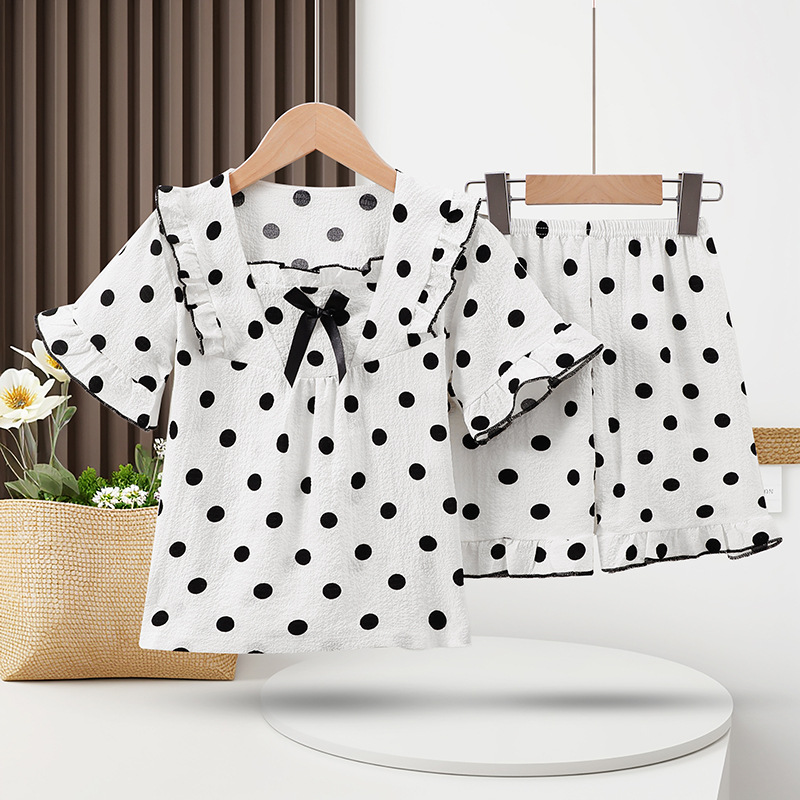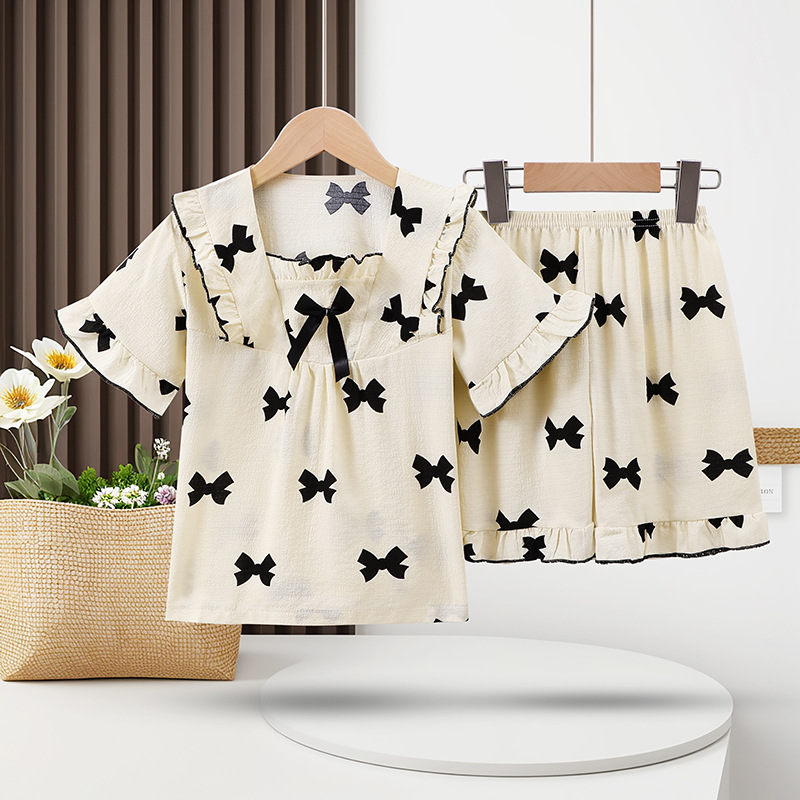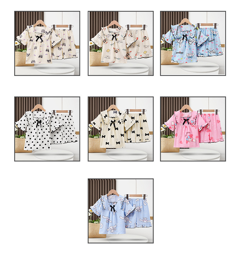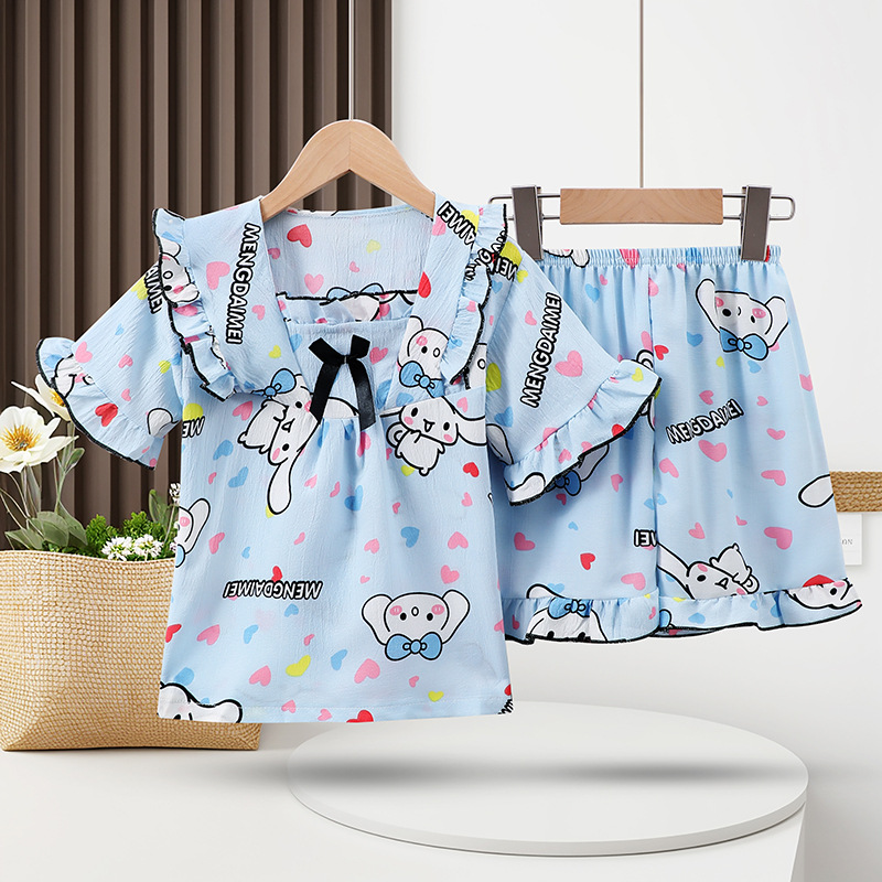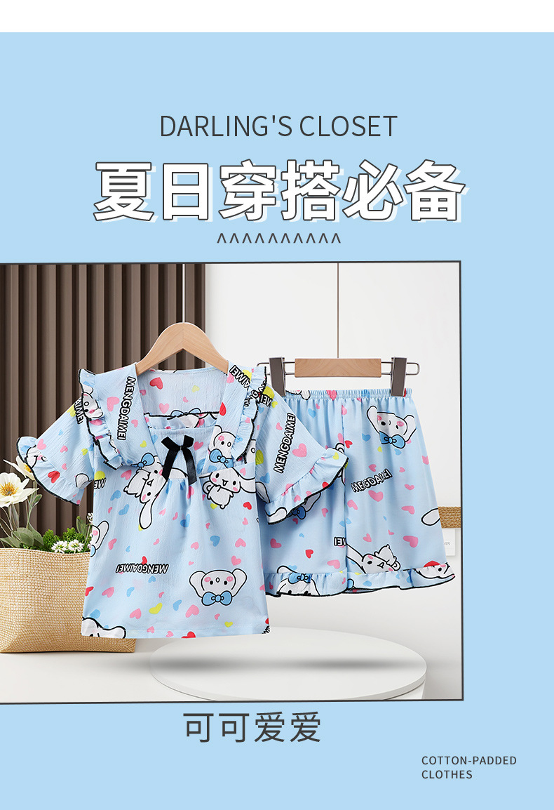 어린이 잠옷 소녀 공주 스타일 여름 새로운 반팔 소녀 잠옷 버블 코튼 에어컨 옷 귀여운 가정 옷스토어 가기
