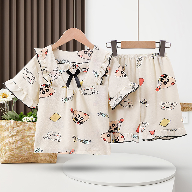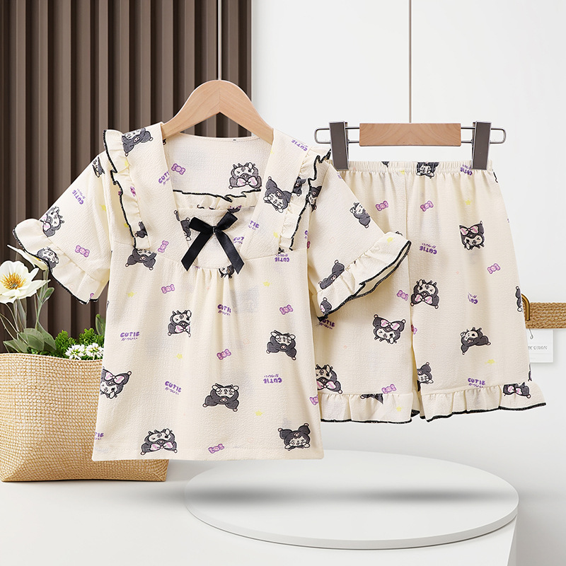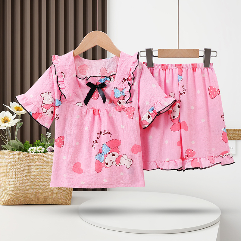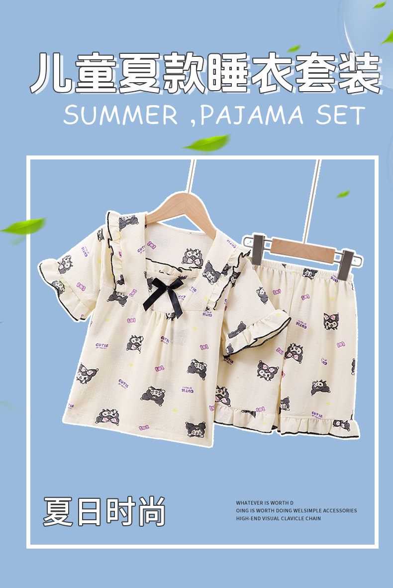 어린이 잠옷 소녀 공주 스타일 여름 새로운 반팔 소녀 잠옷 버블 코튼 에어컨 옷 귀여운 가정 옷