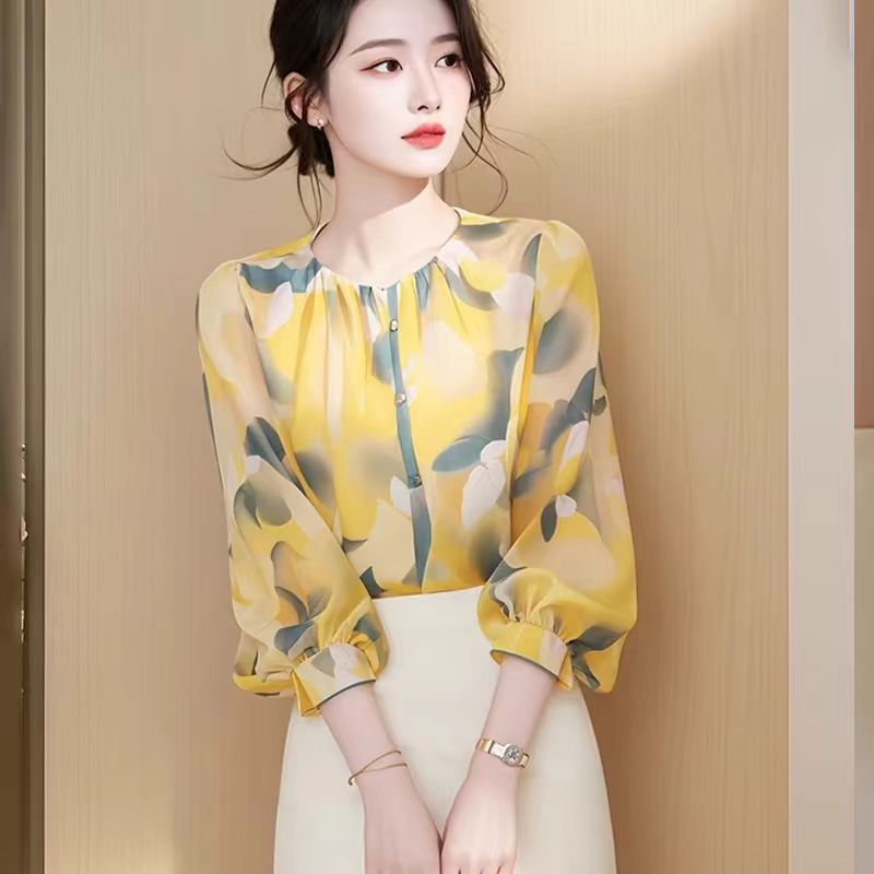 프랑스 꽃 쉬폰 셔츠 7 점 소매 초가을 2025 새로운 아름다운 느슨한 슬림 모양 서양식 작은 셔츠스토어 가기
