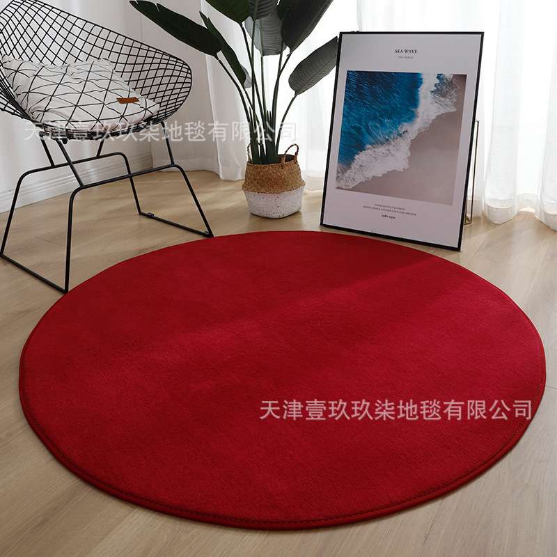 국경 간 단색 산호 양털 라운드 카펫 두꺼운 바닥 매트 거실 커피 테이블 Diaolum 매트 침대 옆 담요 다타미 카펫스토어 가기