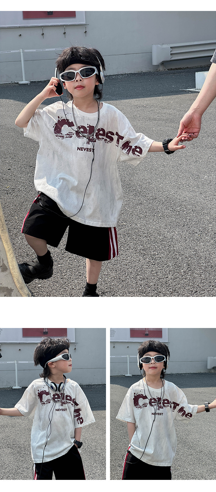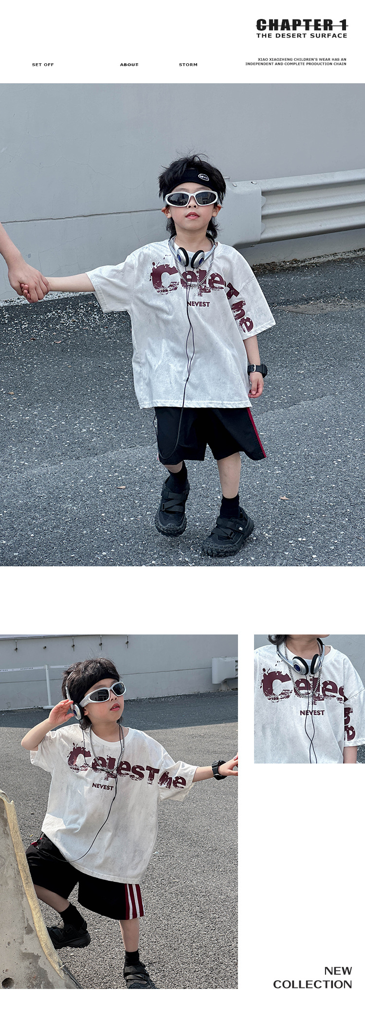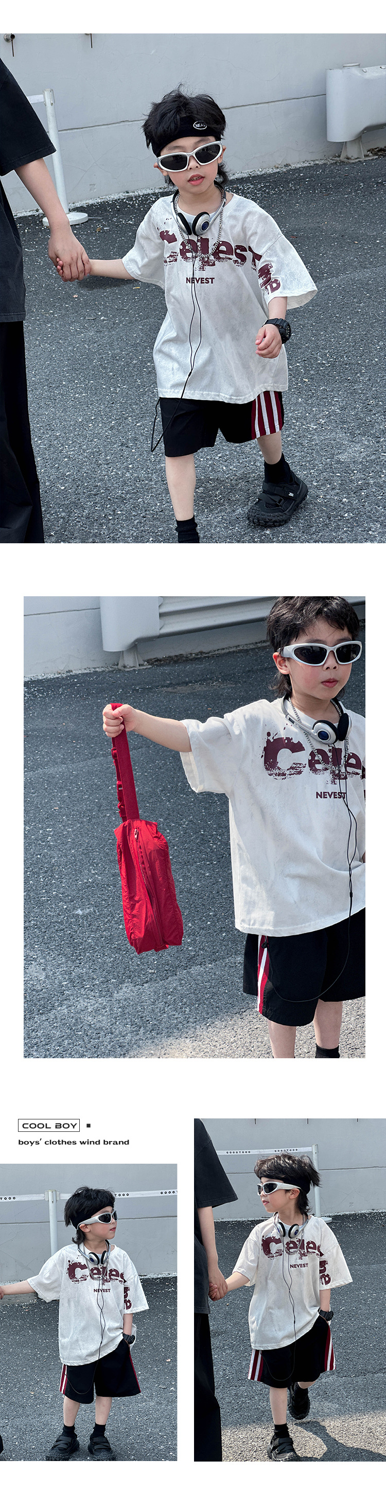 남학생 올매치 티셔츠 2025 년 여름 새 어린이 한국식 편지 인쇄 탑 어린이 느슨한 여름 패션스토어 가기
