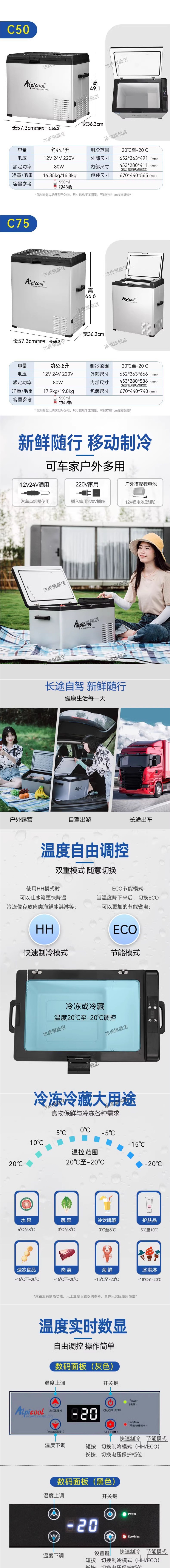 • C50 자동차 홈 겸용(데티 컴프레서 + 디지털 패널) 12V/24V/220V