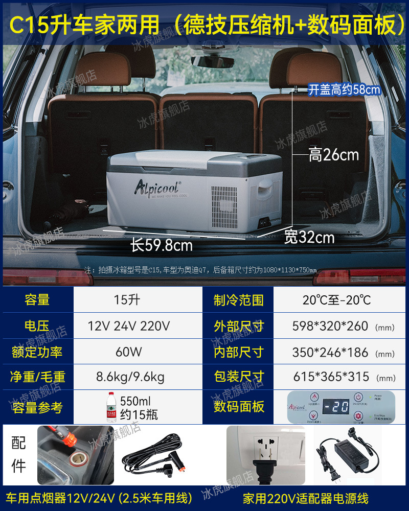 • C15 리터 자동차 홈 겸용 (Detech 압축기 + 디지털 패널) 12V/24V/220V