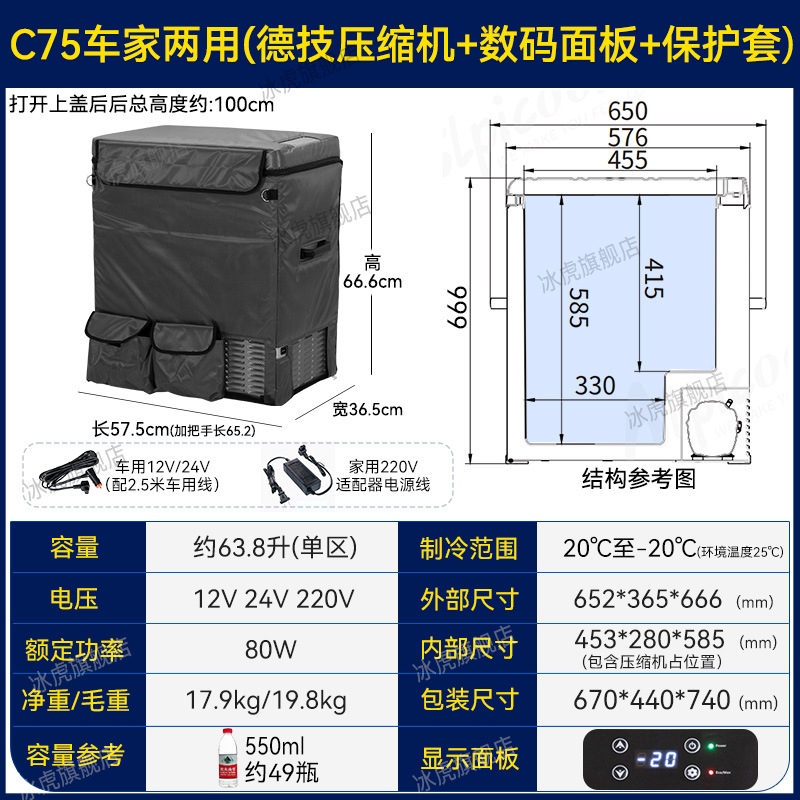 • C75 이중 목적 자동차 홈 (Detech 압축기 + 보호 케이스 + 디지털 패널) 12V/24V/220V