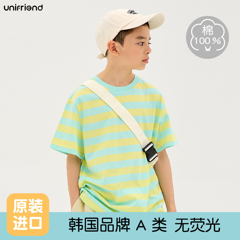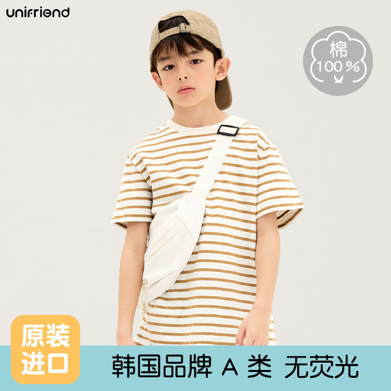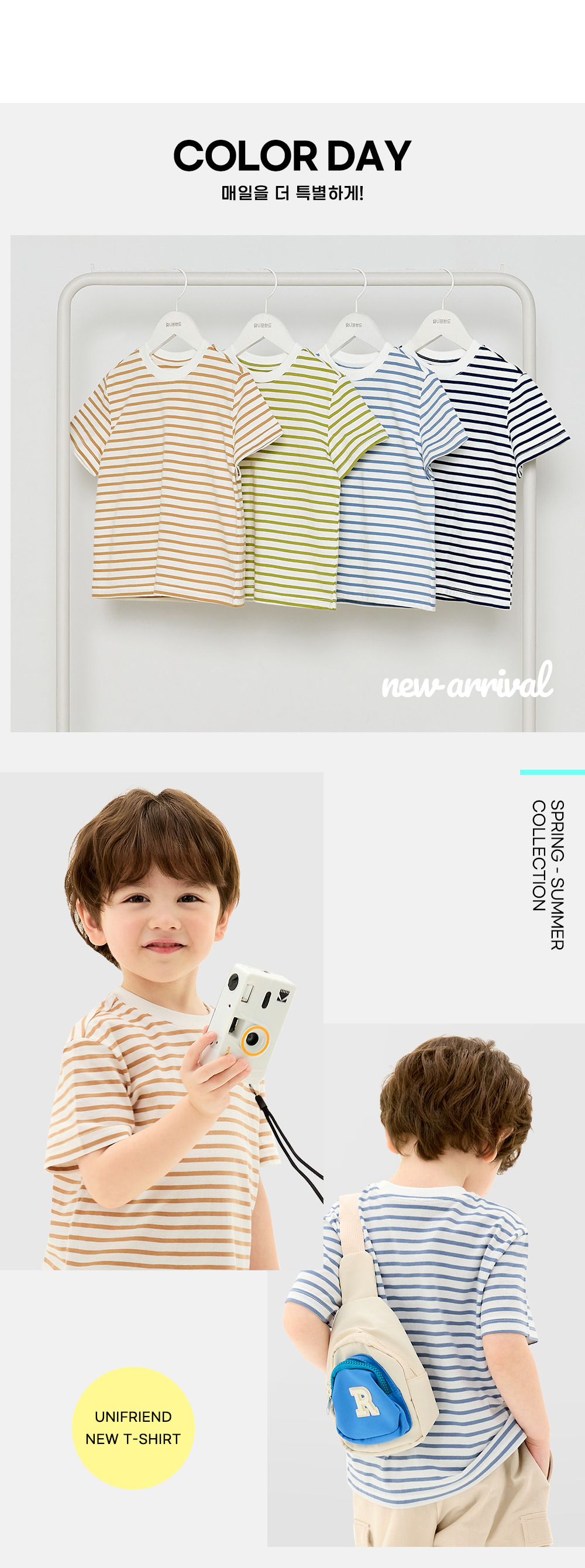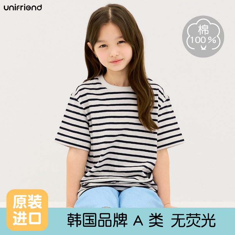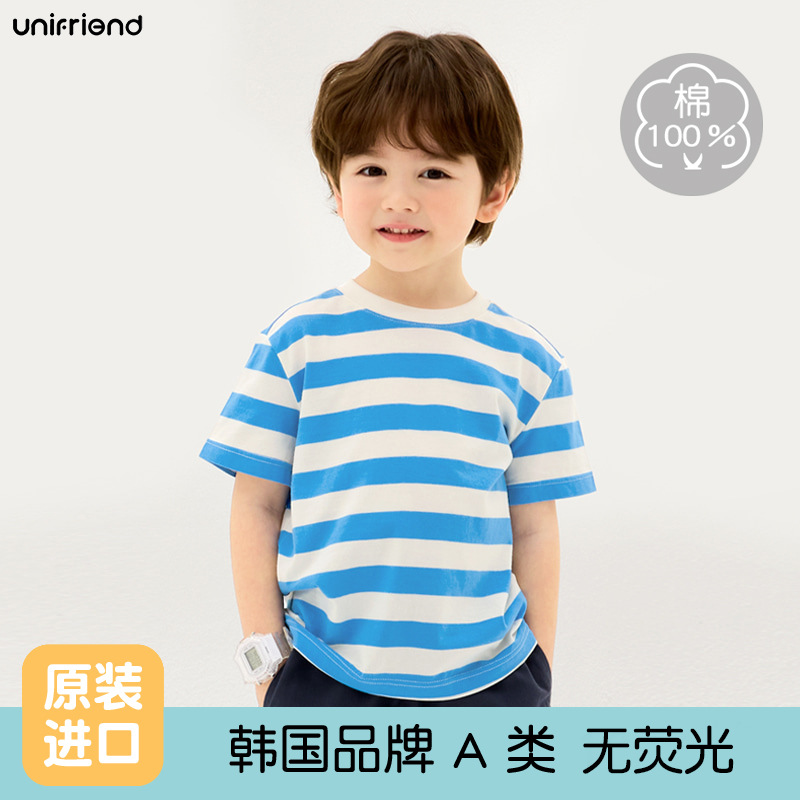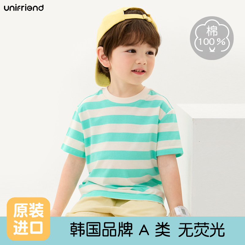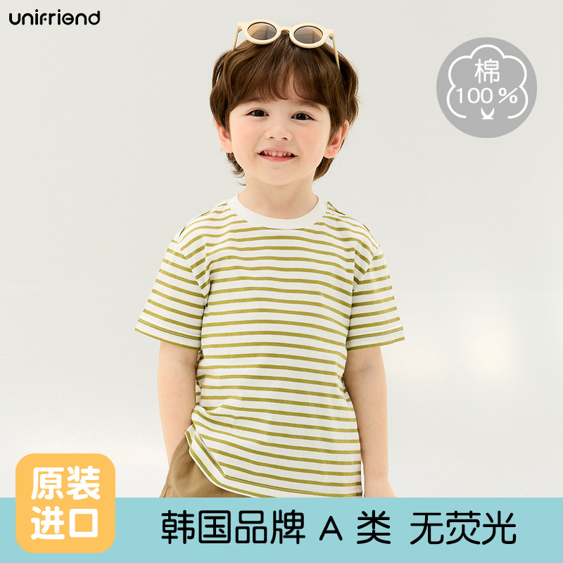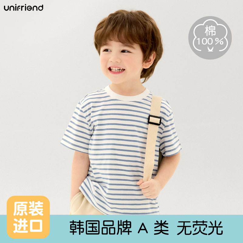 Unifriend 여름 어린이 반팔 티셔츠 코튼 싱글 피스 베이비 스트라이프 언더 셔츠 소년 소녀 한국 스타일스토어 가기