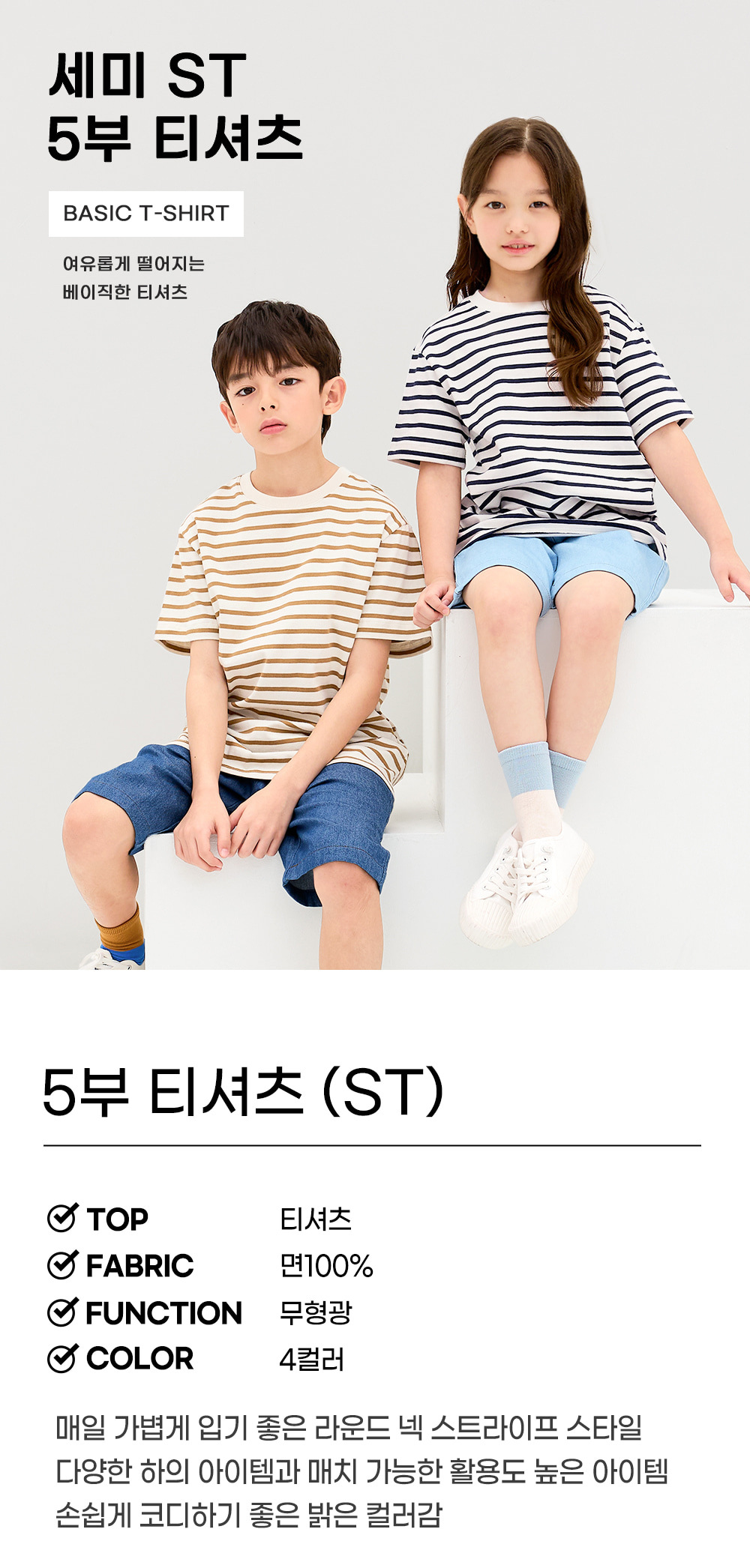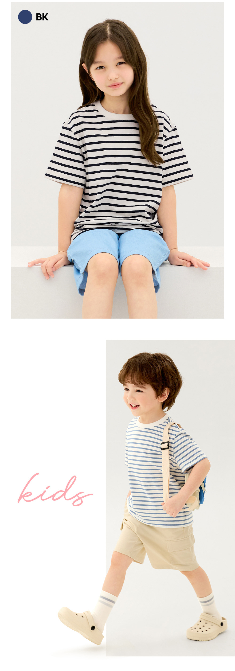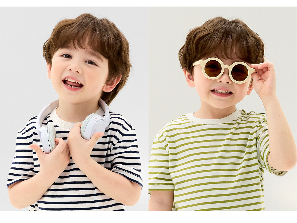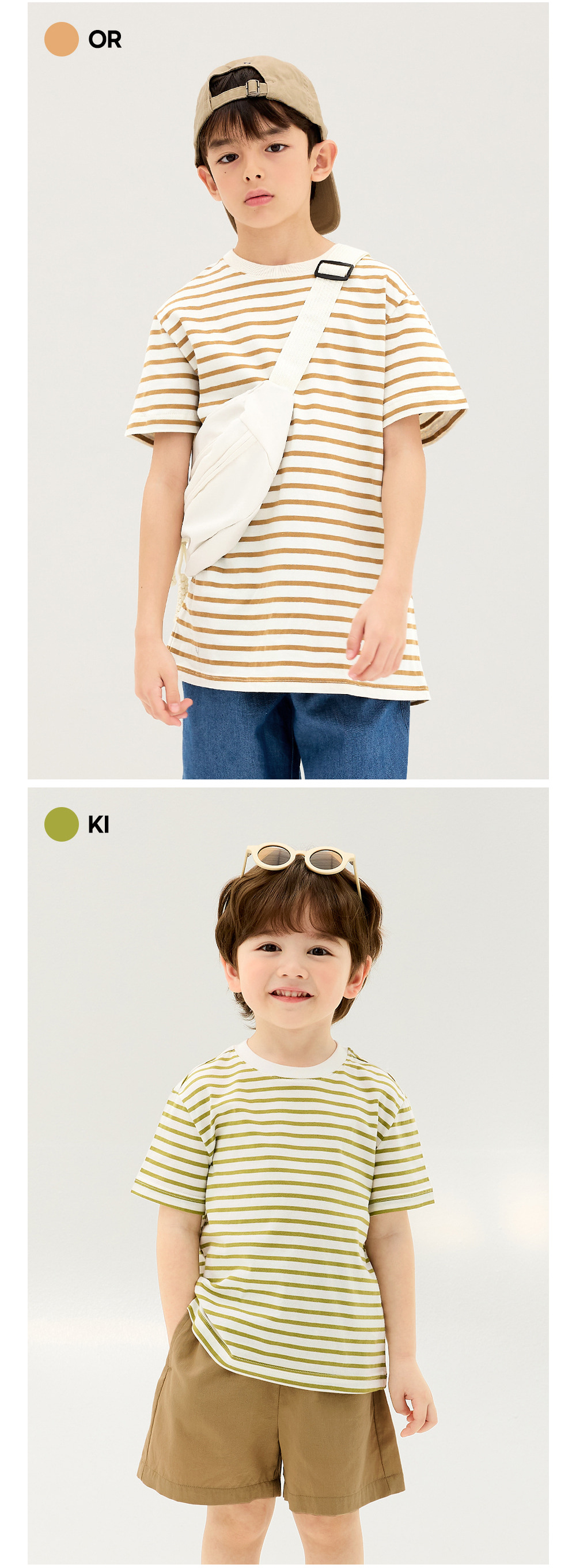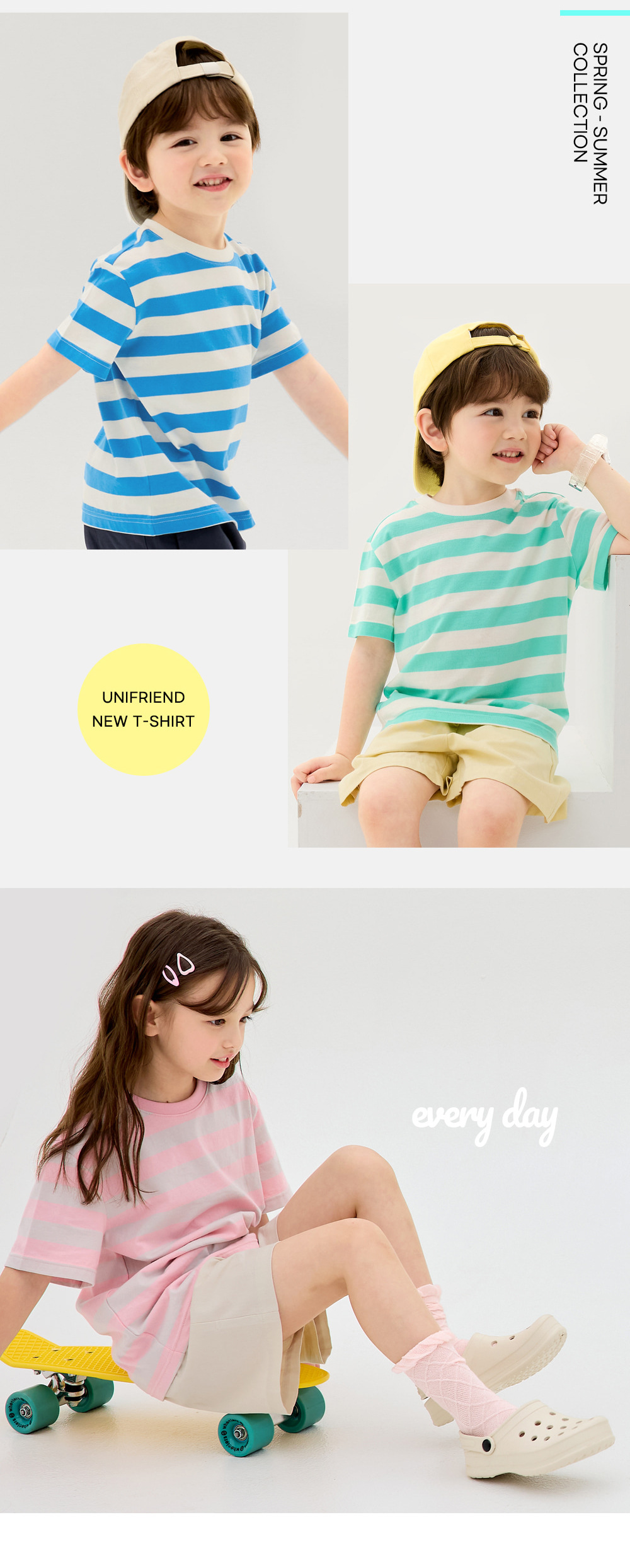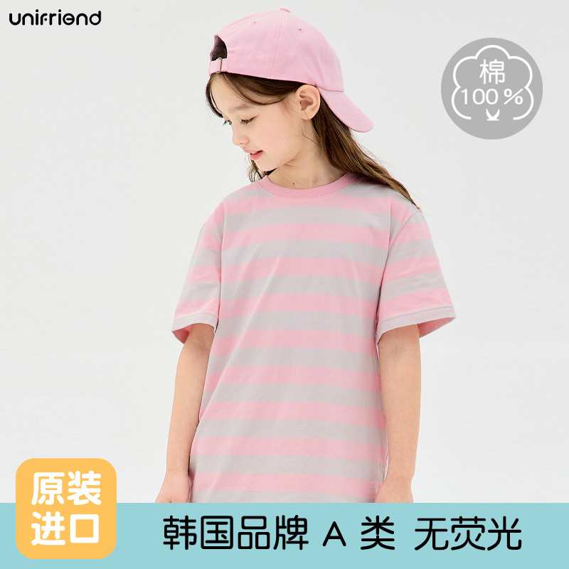 Unifriend 여름 어린이 반팔 티셔츠 코튼 싱글 피스 베이비 스트라이프 언더 셔츠 소년 소녀 한국 스타일스토어 가기
