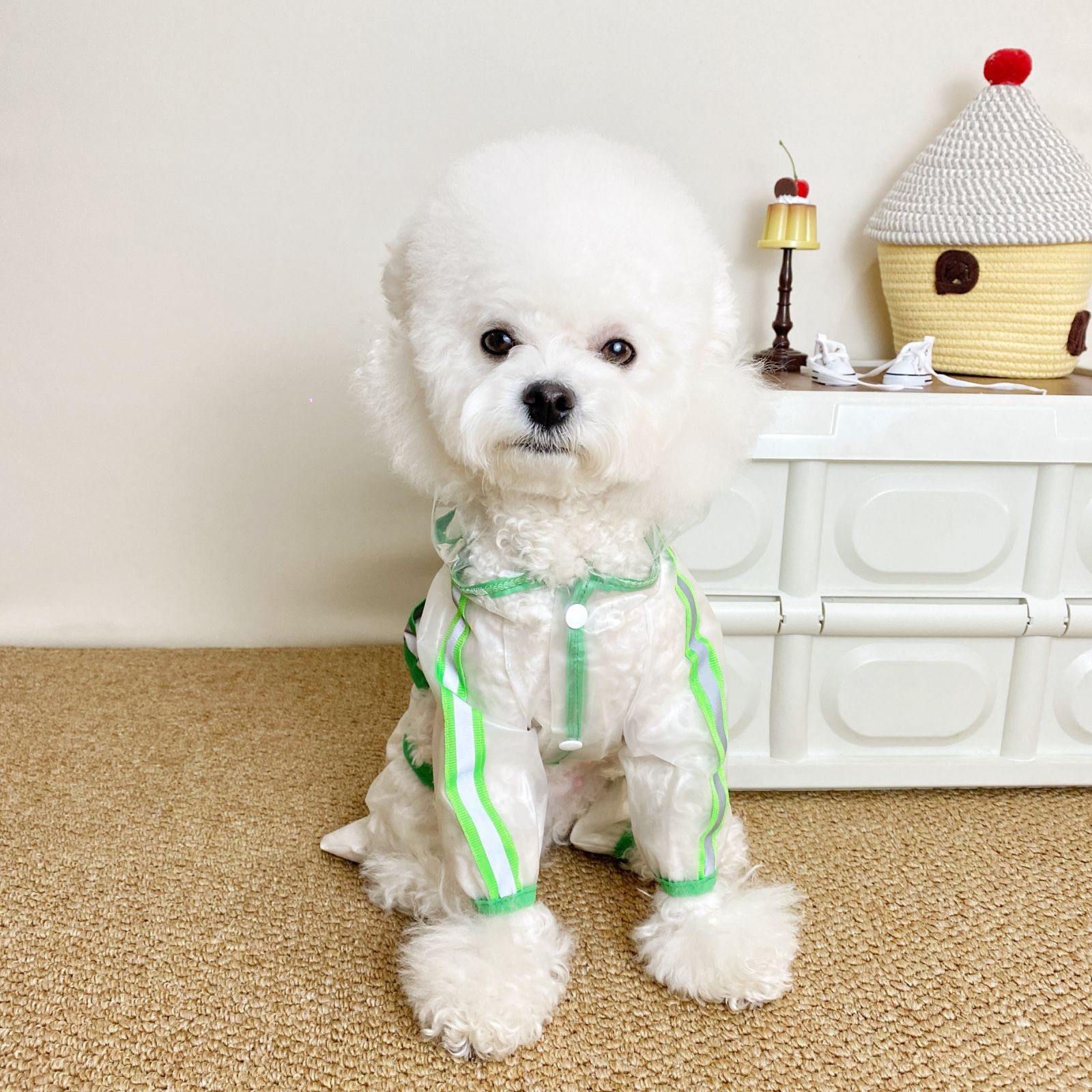새로운 애완 동물 비옷 개 꼬리 커버가있는 네 다리 투명 비옷 모자 개 비옷 도매 재고 있음스토어 가기