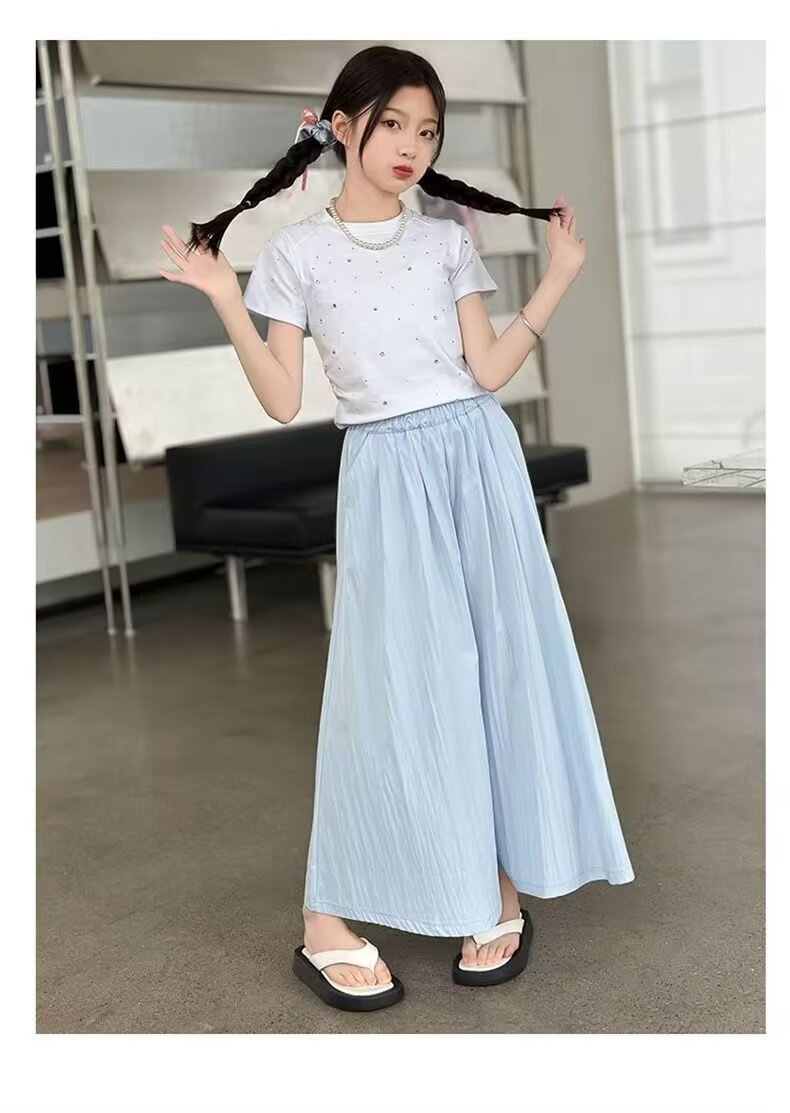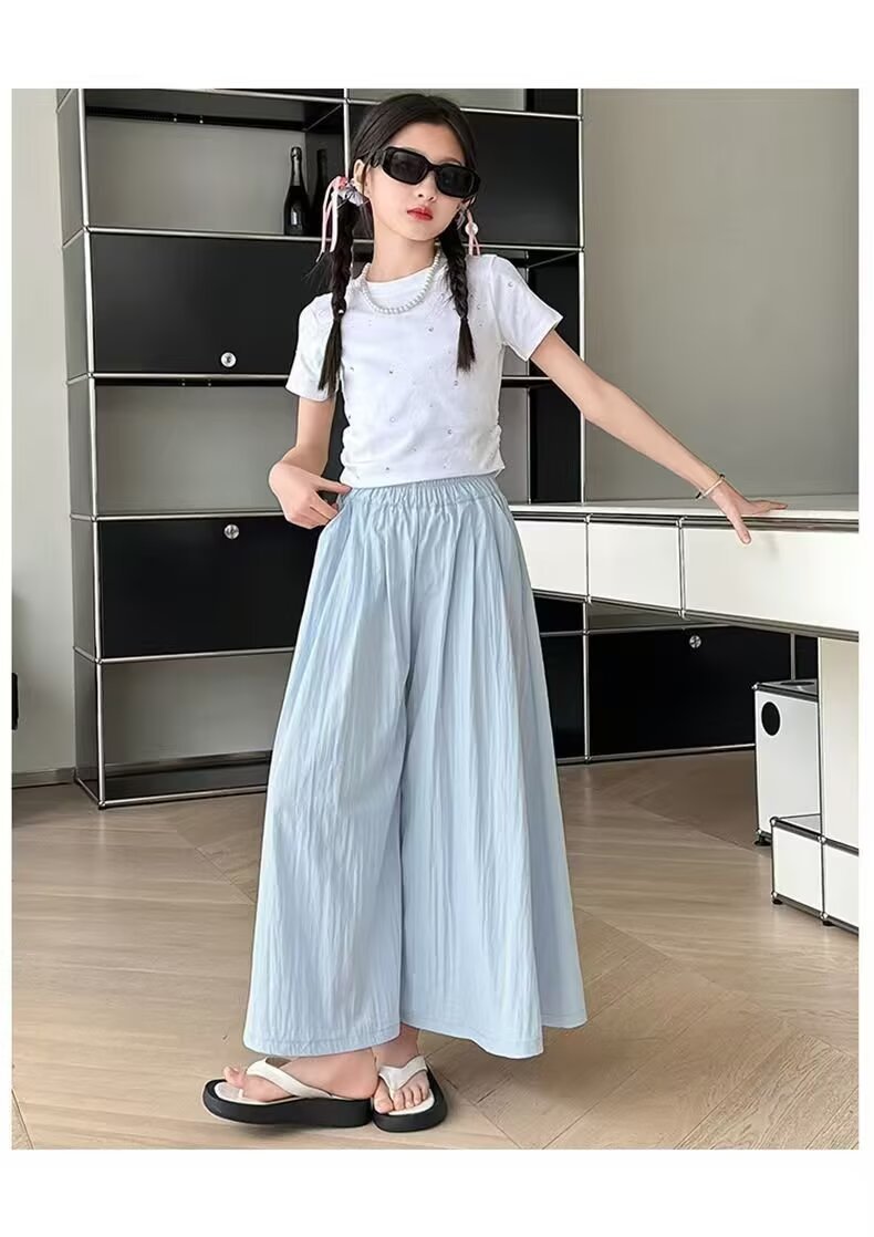 소녀 바지 여름 야마모토 바지 얇은 2025 새로운 스타일 어린이 자른 넓은 다리 바지 여름 큰 어린이 바지스토어 가기