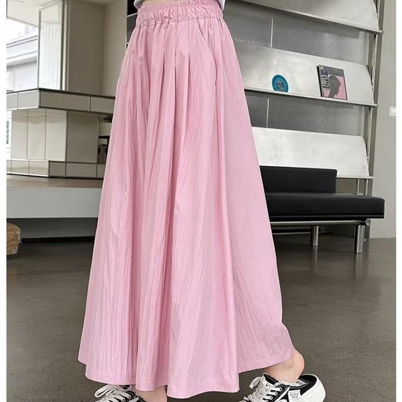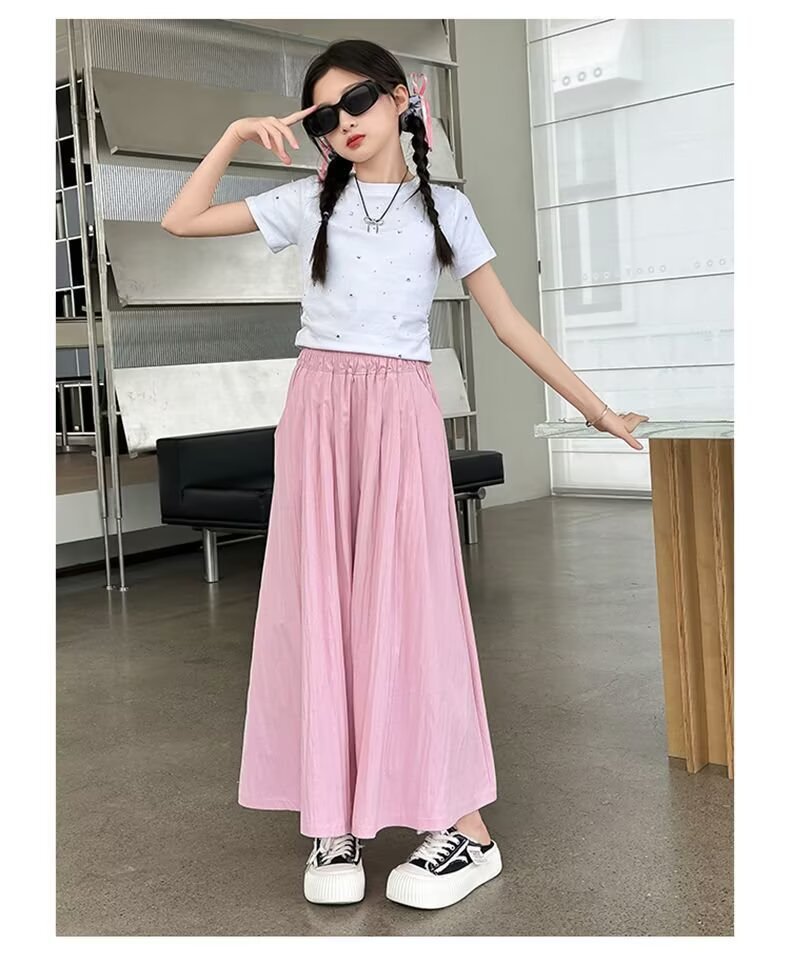 소녀 바지 여름 야마모토 바지 얇은 2025 새로운 스타일 어린이 자른 넓은 다리 바지 여름 큰 어린이 바지