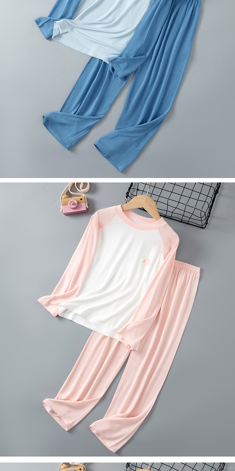 모달 아동복 세트, 여아 에어컨 의류, 남아 잠옷, 청소년 긴팔 바지, 가을 옷과 긴 바지