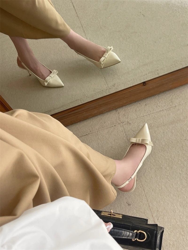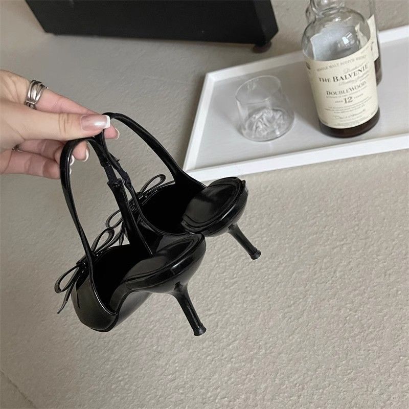 여성을 위한 한국식 스틸레토힐 토백 스트랩 샌들, 패셔너블하고 우아한 포인티드 토 보우 하이힐 2025 가을 신스타일스토어 가기