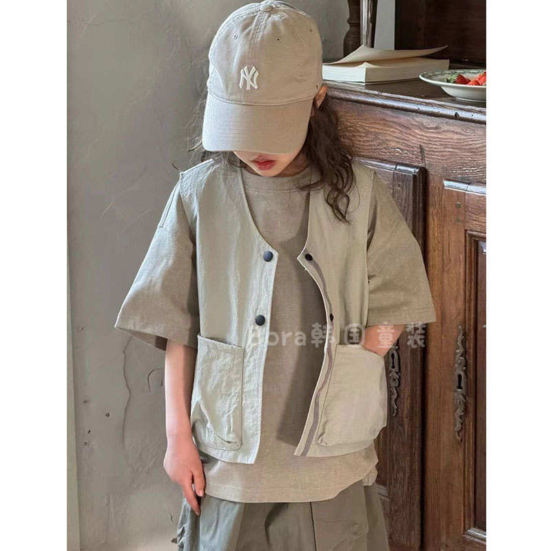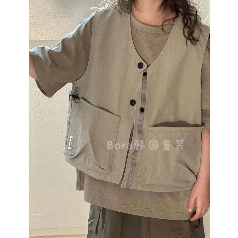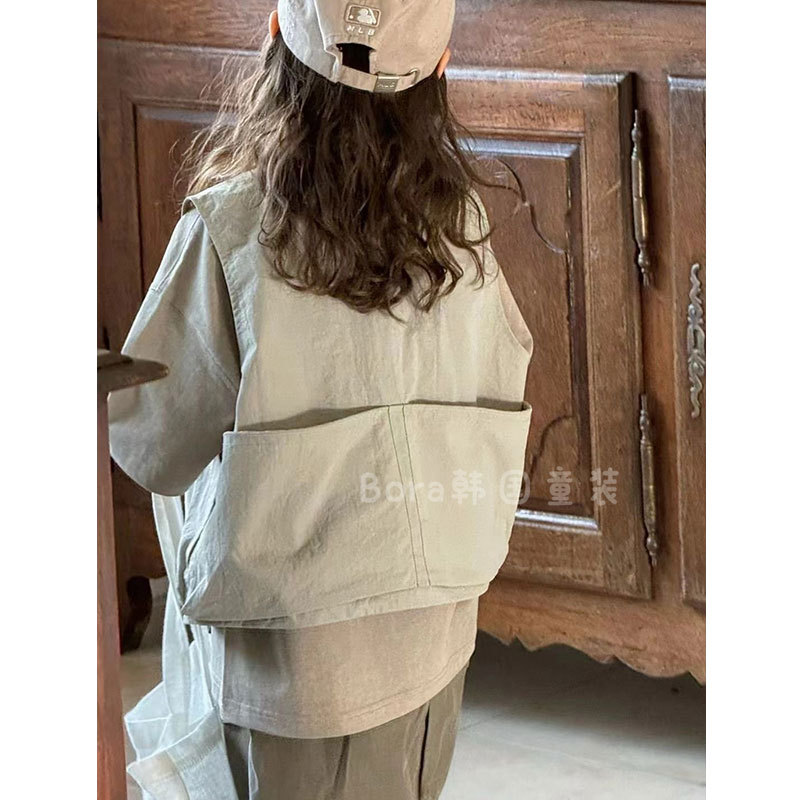 어린이 코트 서양식 봄 2025 새로운 도착 대형 어린이 회색 야외 조끼 소녀의 얇은 올 매치 탑스토어 가기